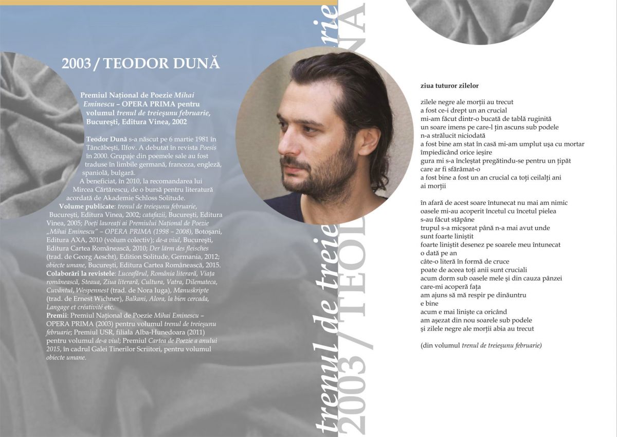 Memorialul Ipotești – Centrul Național de Studii Mihai Eminescu își propune, într-un parteneriat media cu ziarul Botoșăneanul, să prezinte, în fiecare săptămână, câte un laureat al Premiului Național de Poezie Mihai Eminescu – Opus Primum.