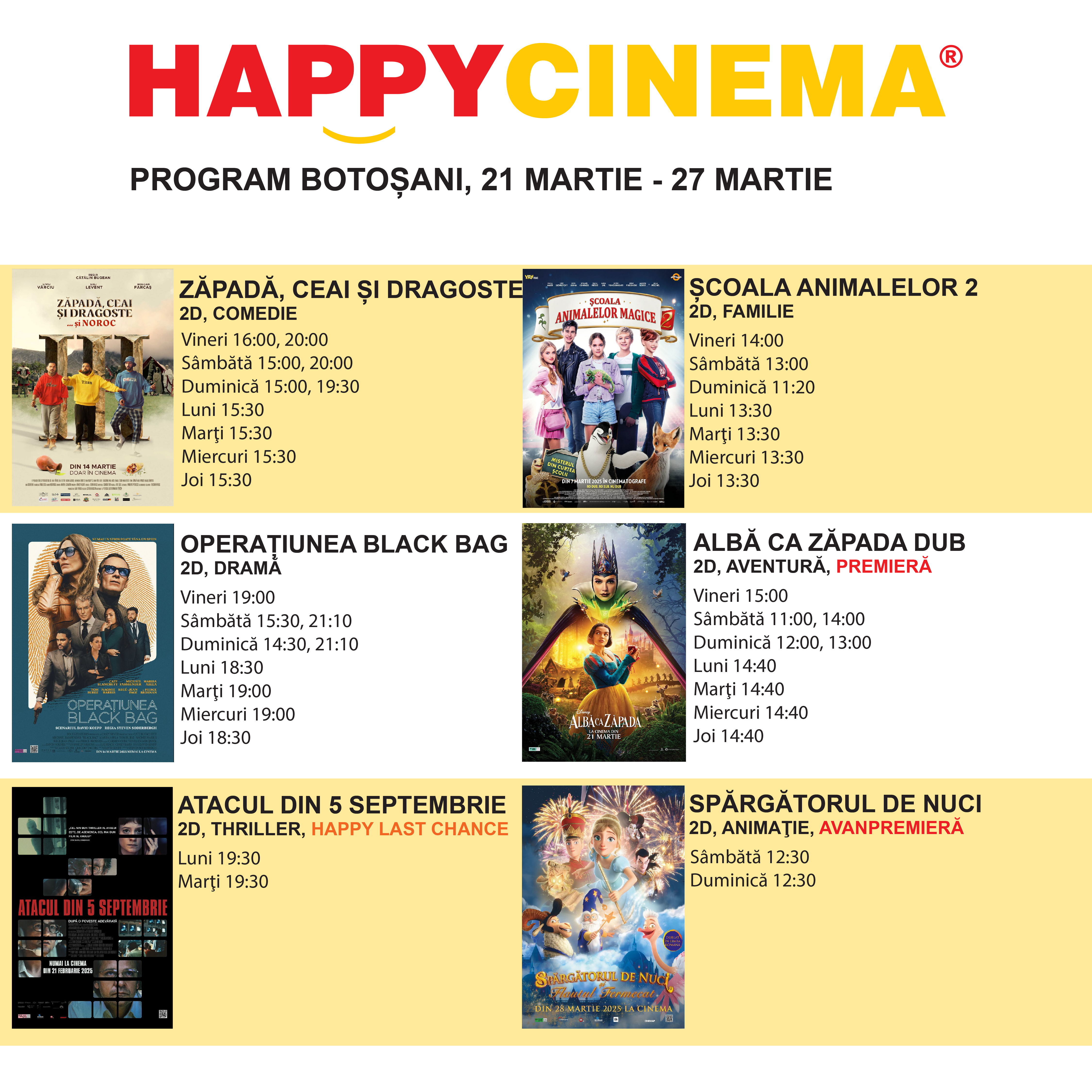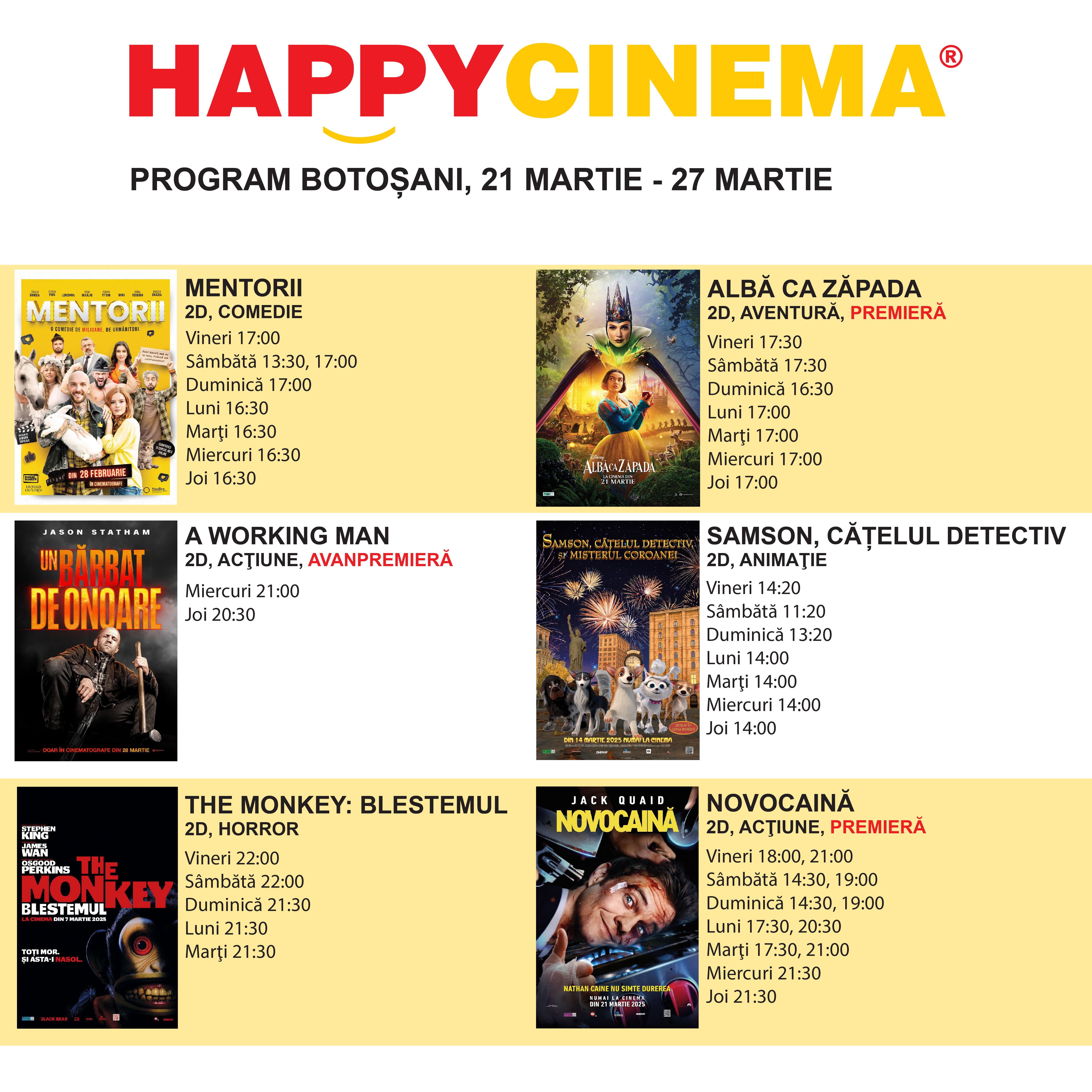 Happy Cinema Botoșani a transmis programul pentru săptămâna 21 -27 martie 2025.