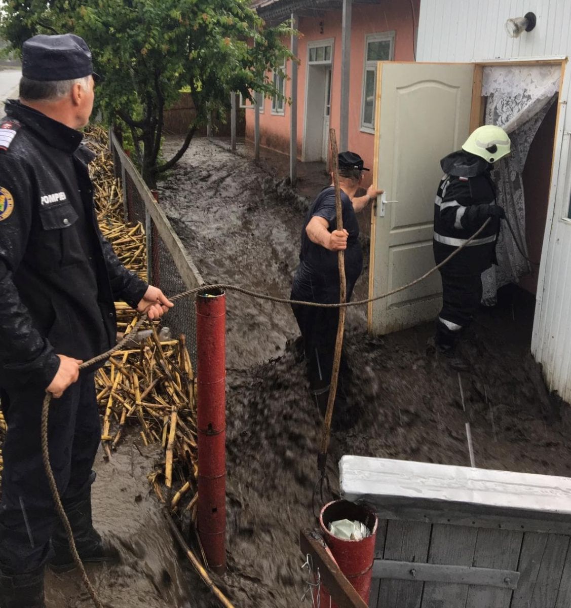 20 de pompieri intervin cu o barcă, o motopompă și două autospeciale pentru scoaterea apei din case.