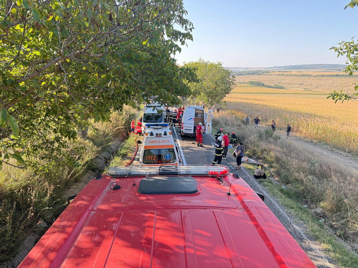 Este desfășurare de forțe la locul accidentului cumplit care a avut loc în această dimineață.