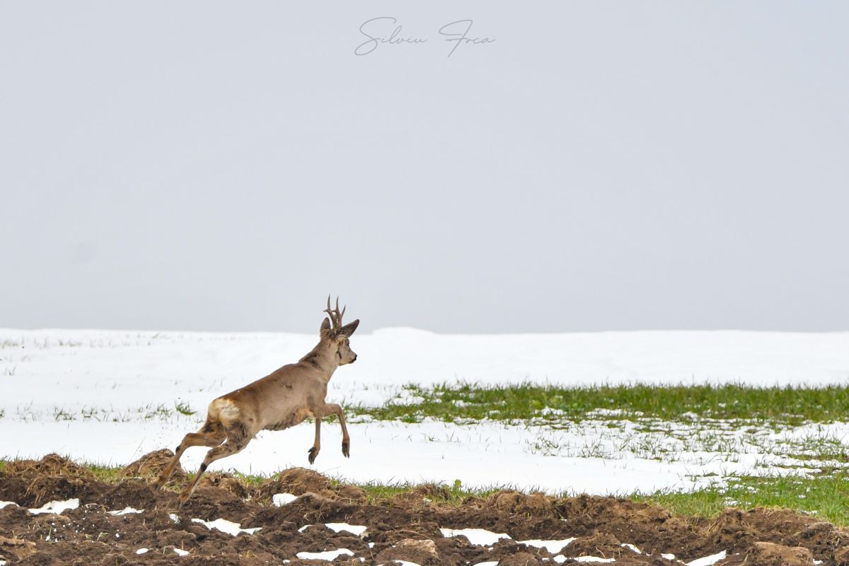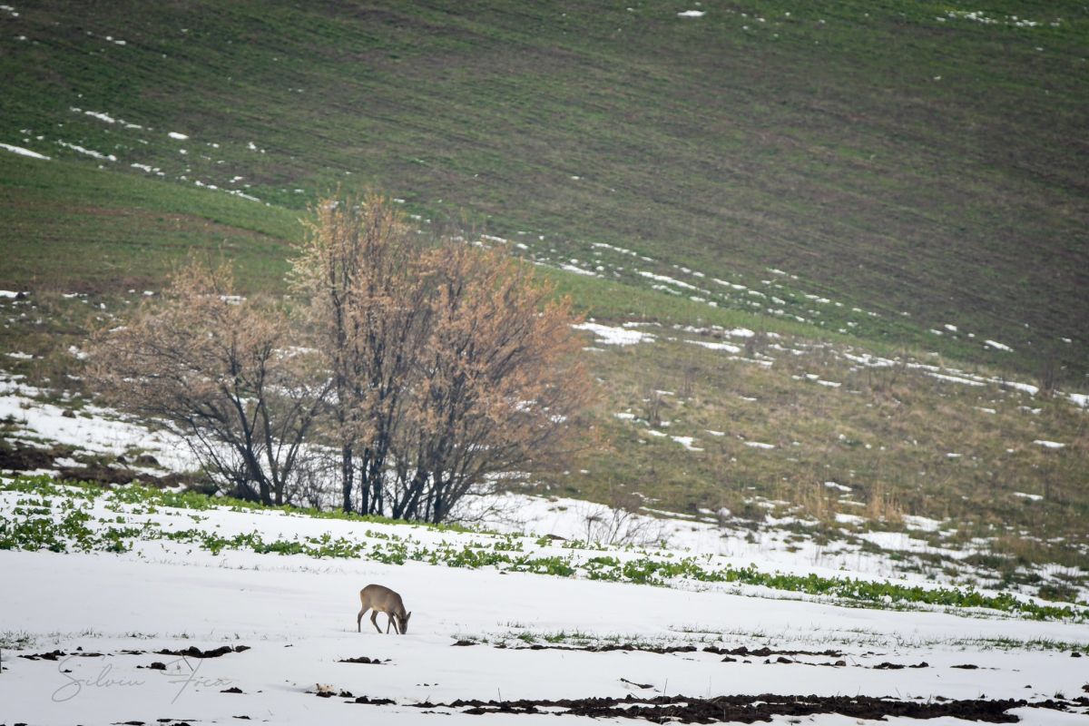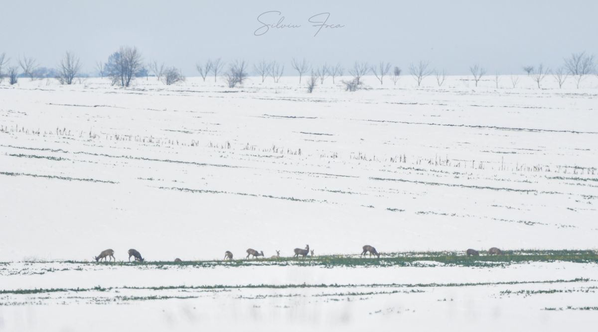 ”Cum s-ar spune: tot răul spre bine. Cu zăpada asta neașteptată sunt mai ușor de reperat căprioarele pe câmpurile albe”, a scris autorul imaginilor surprinse pe câmpurile din județul Botoșani.