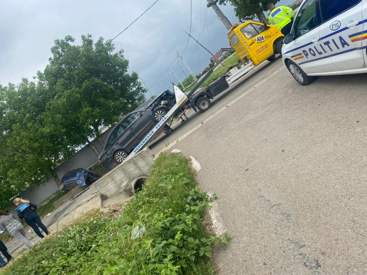 În urma impactului, una dintre mașini a ajuns în șanț.