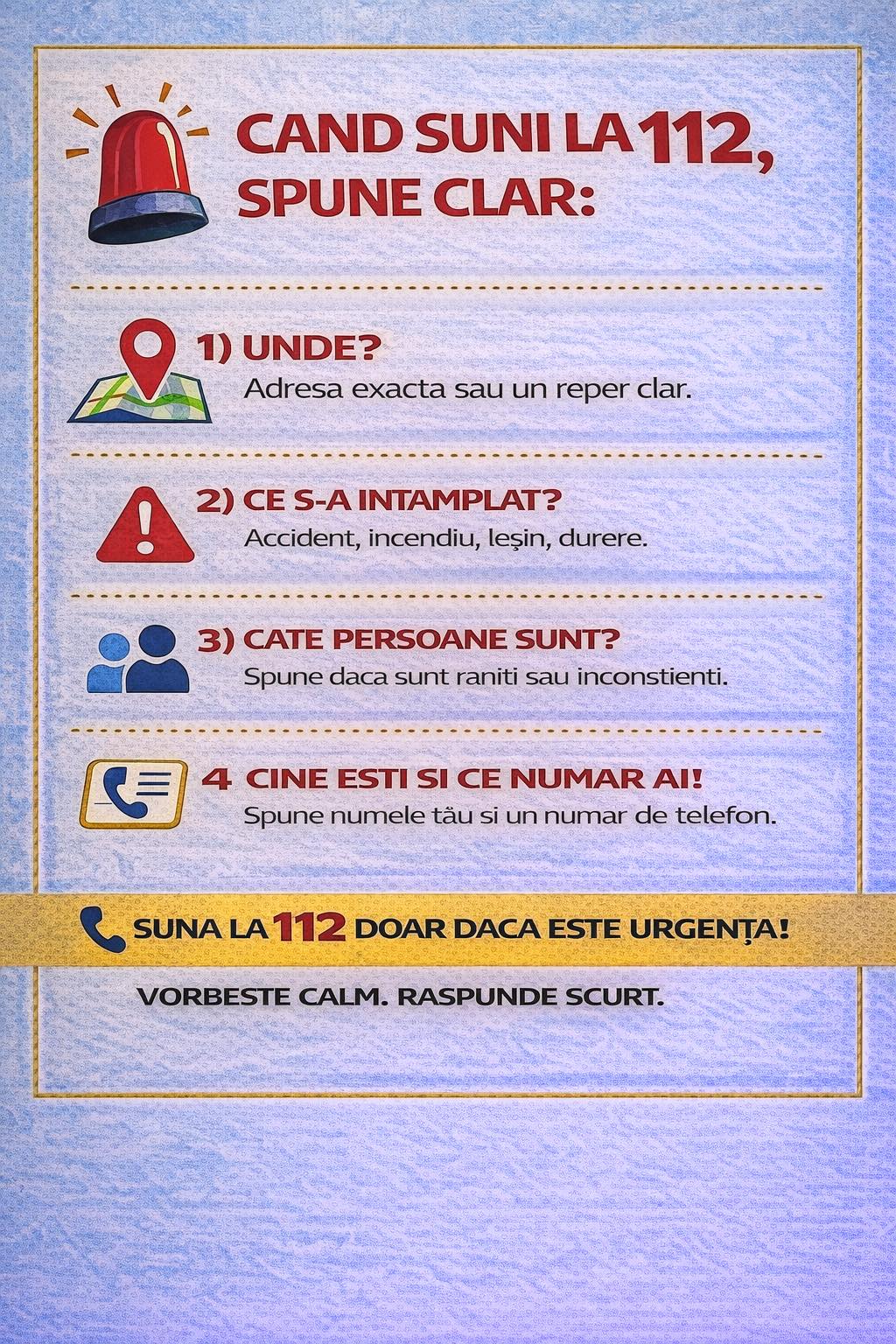 Iată informațiile care trebuie transmise cu acuratețe când apelați numărul unic de urgență 112.