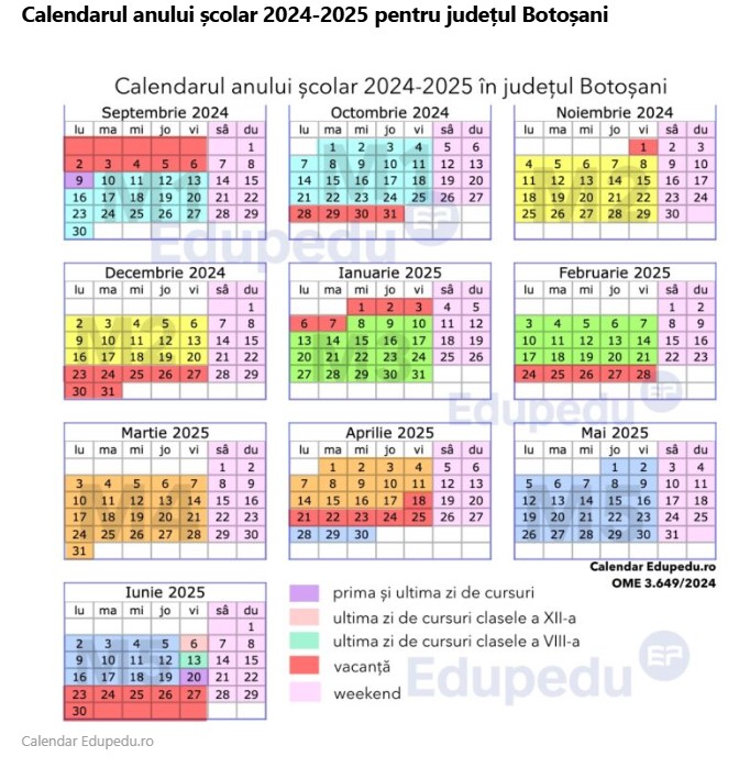 Anul școlar 2024—2025 este structurat astfel: