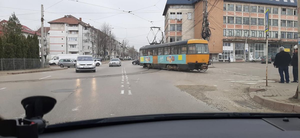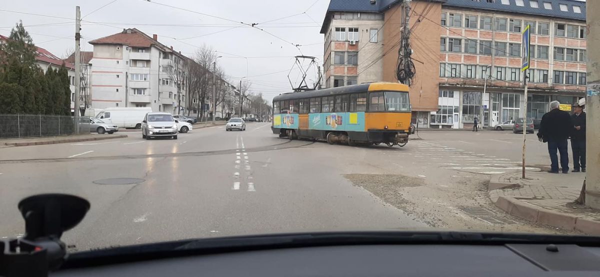 Din fericire, tramvaiul care a sărit de pe șine nu a creat probleme în trafic.