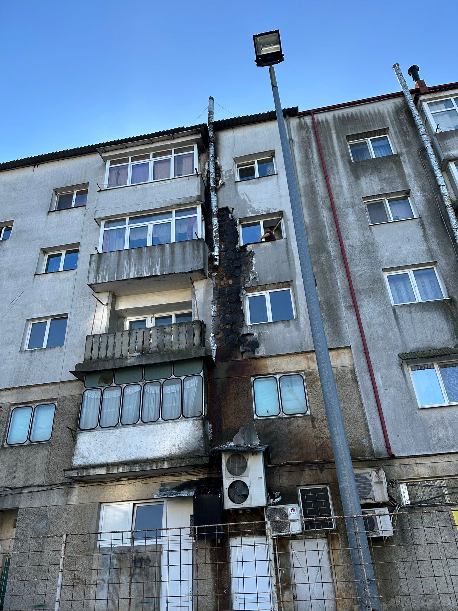 Un incendiu s-a produs, astăzi, în orașul Darabani. Peretele exterior al unui bloc a luat foc de la un coș de fum neizolat termic față de materialele combustibile.