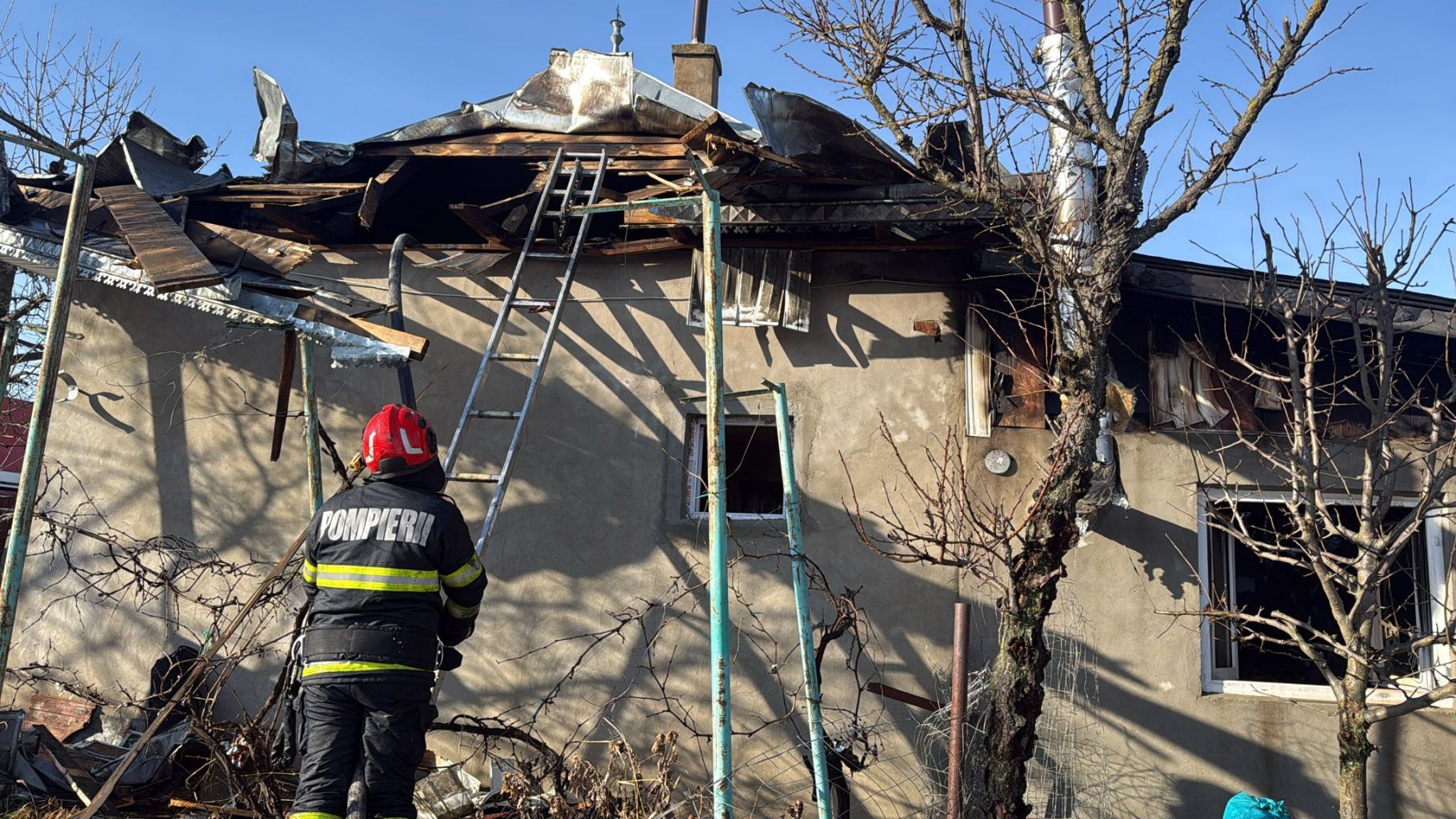 Incendiu violent la o casă, patru butelii scoase afară de pompieri