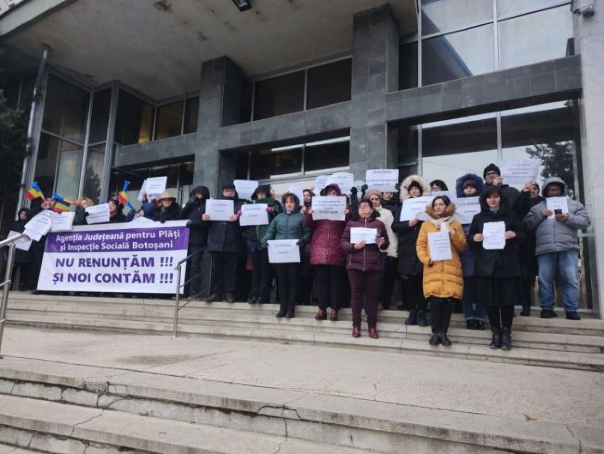 În timpul negocierilor de ieri, salariații de la Casa de Pensii, Agenția Județeană de Prestații și Inspecție Socială dar și din Agenția Județeană pentru Ocuparea Forței de Muncă au așteptat rezultatul în stradă, cu pancarte în mâini.