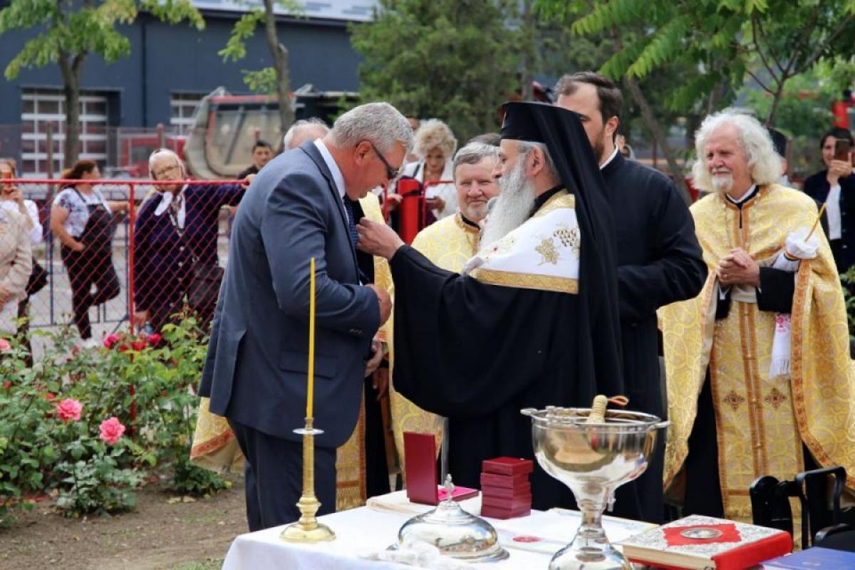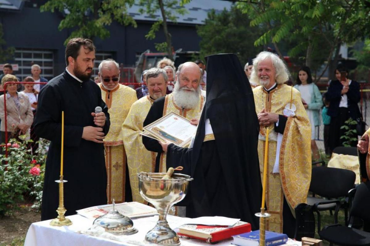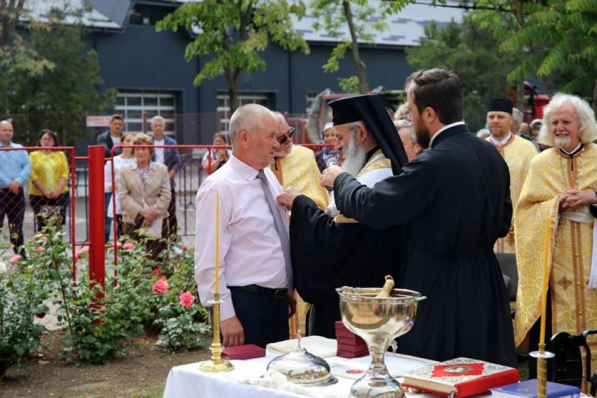 După ce Părintele Mitropolit Teofan a stropit Crucea de lemn cu apă sfințită, Înaltpreasfinția Sa a oferit diplome și distincții celor care au sprijinit construirea troiței.