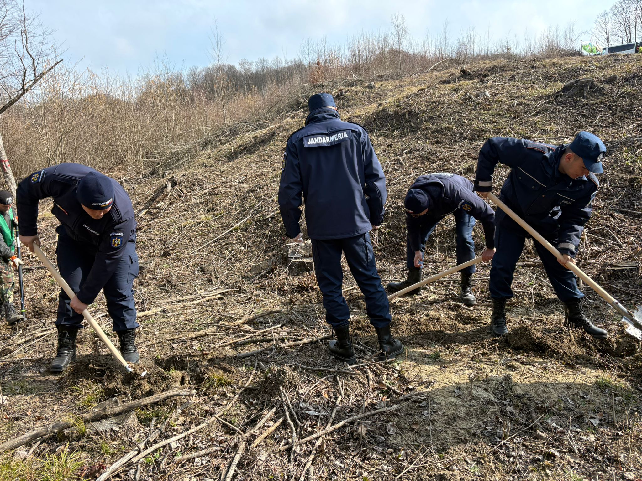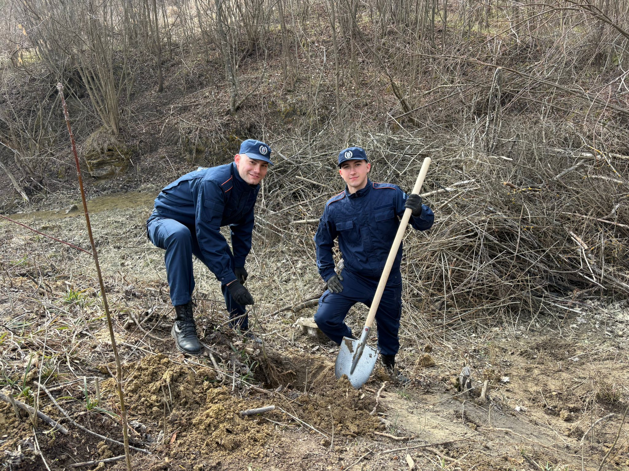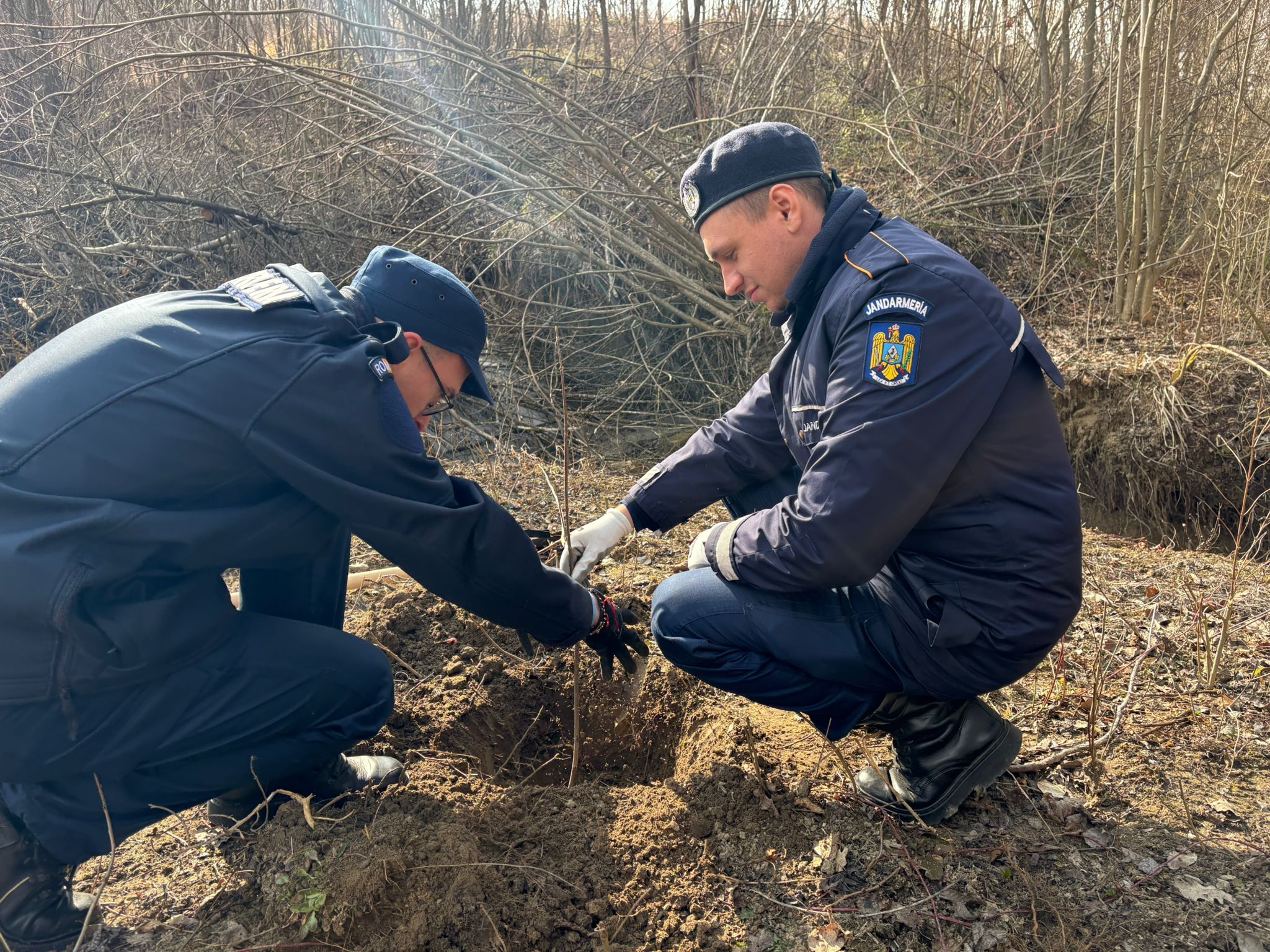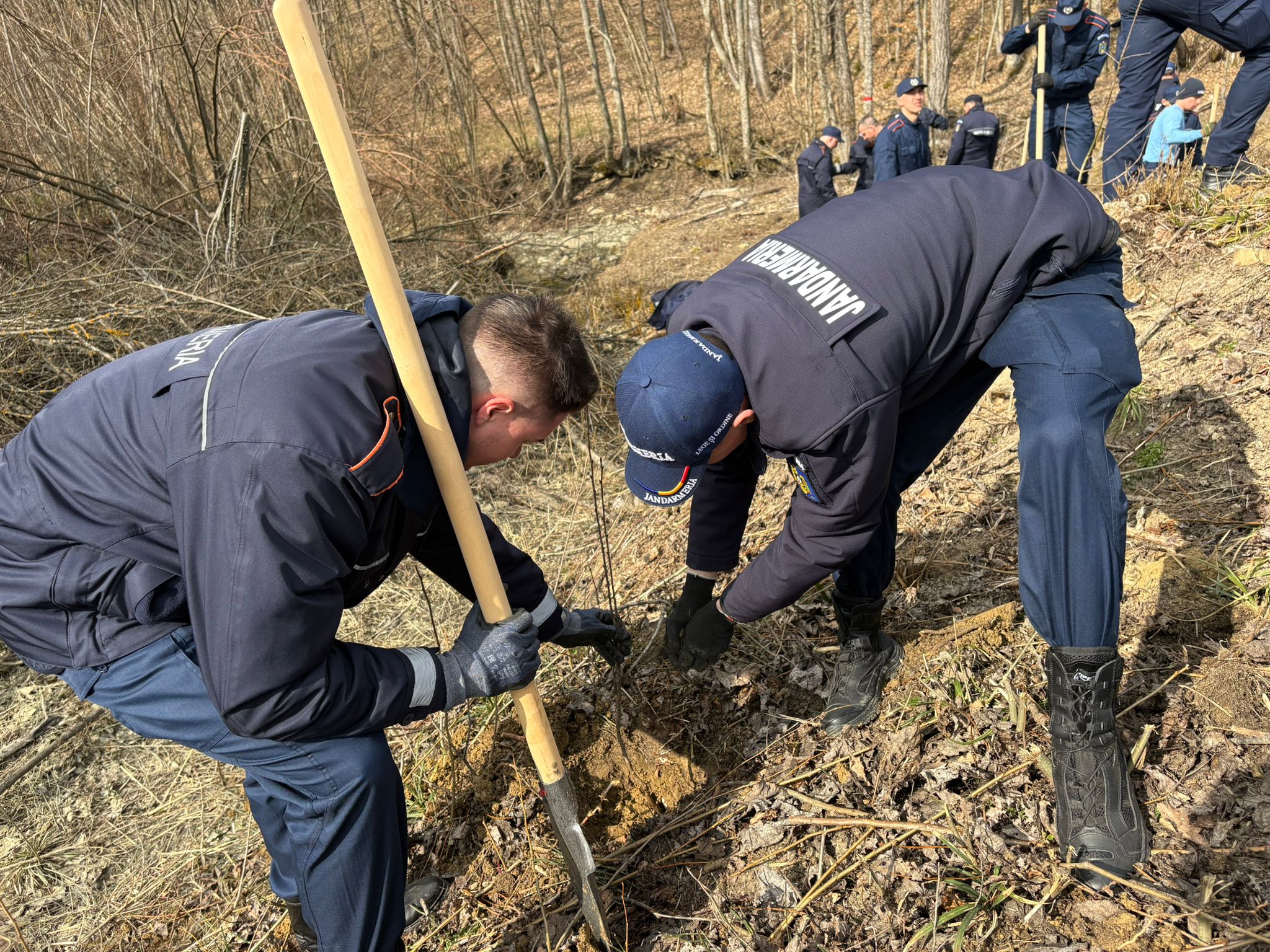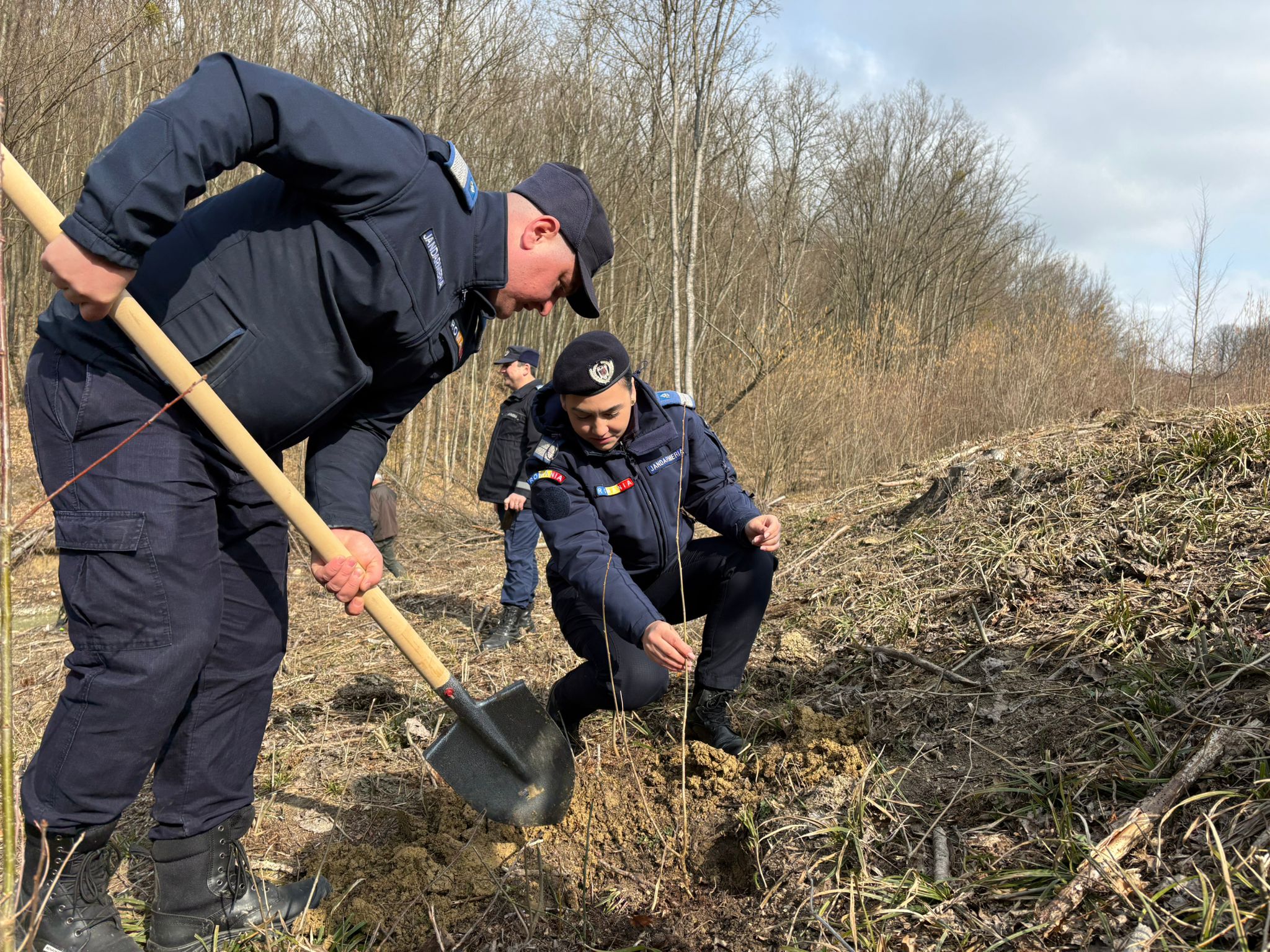 La început de primăvară, cu ocazia Zilei Internaționale a Pădurilor, jandarmii au plantat arbori împreună cu specialiști din cadrul