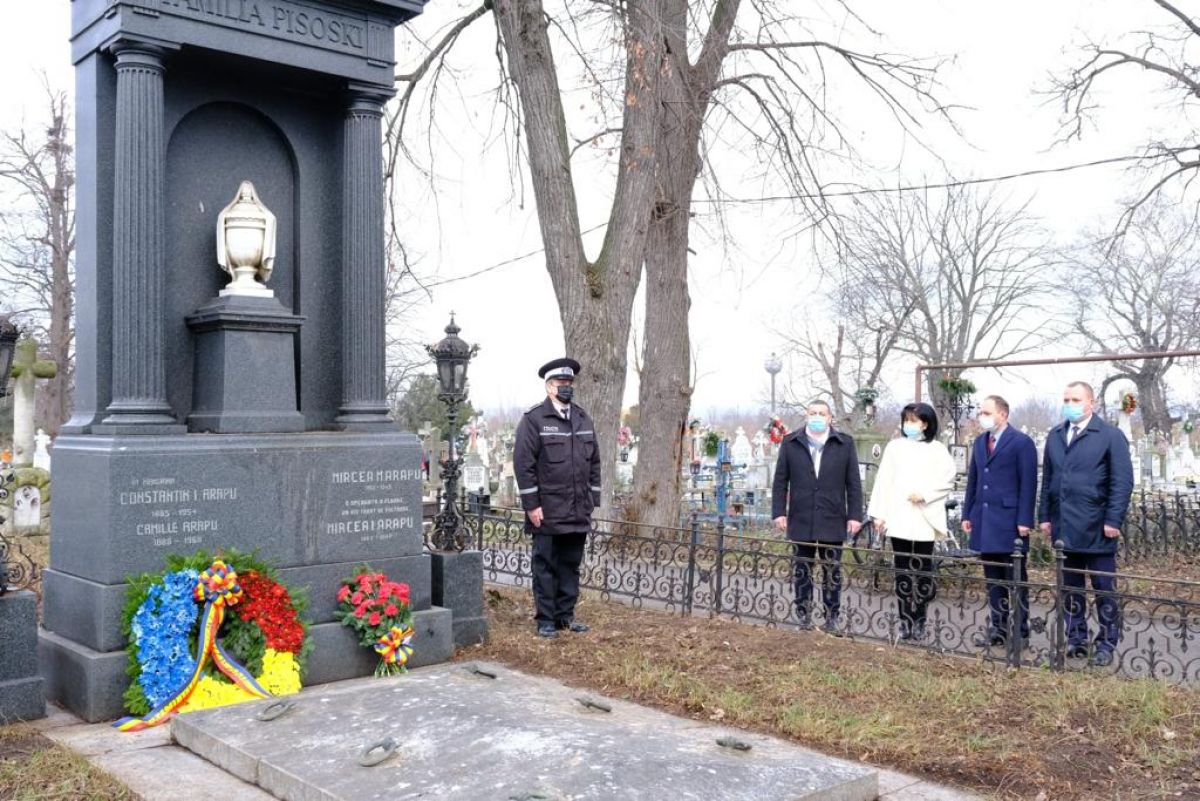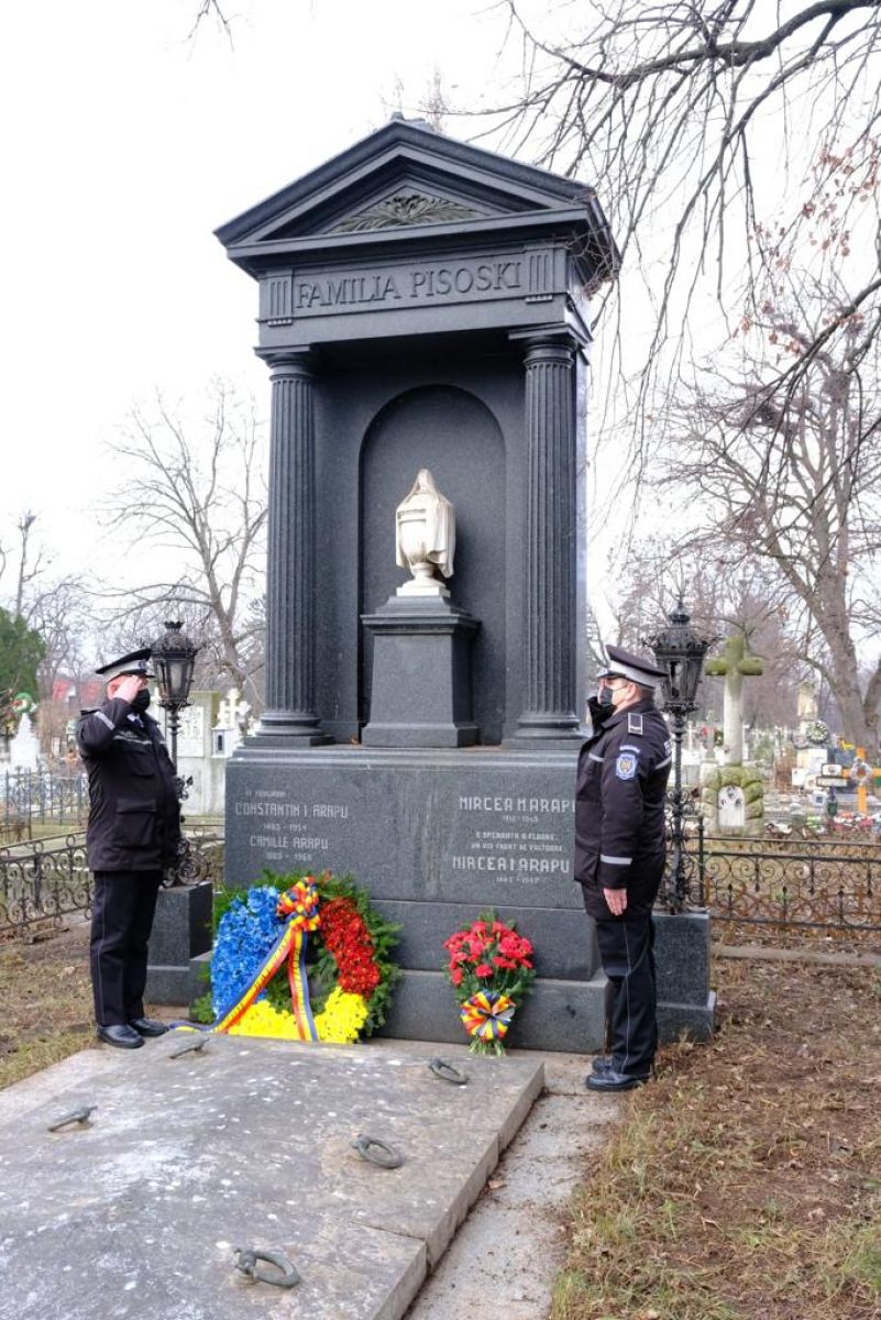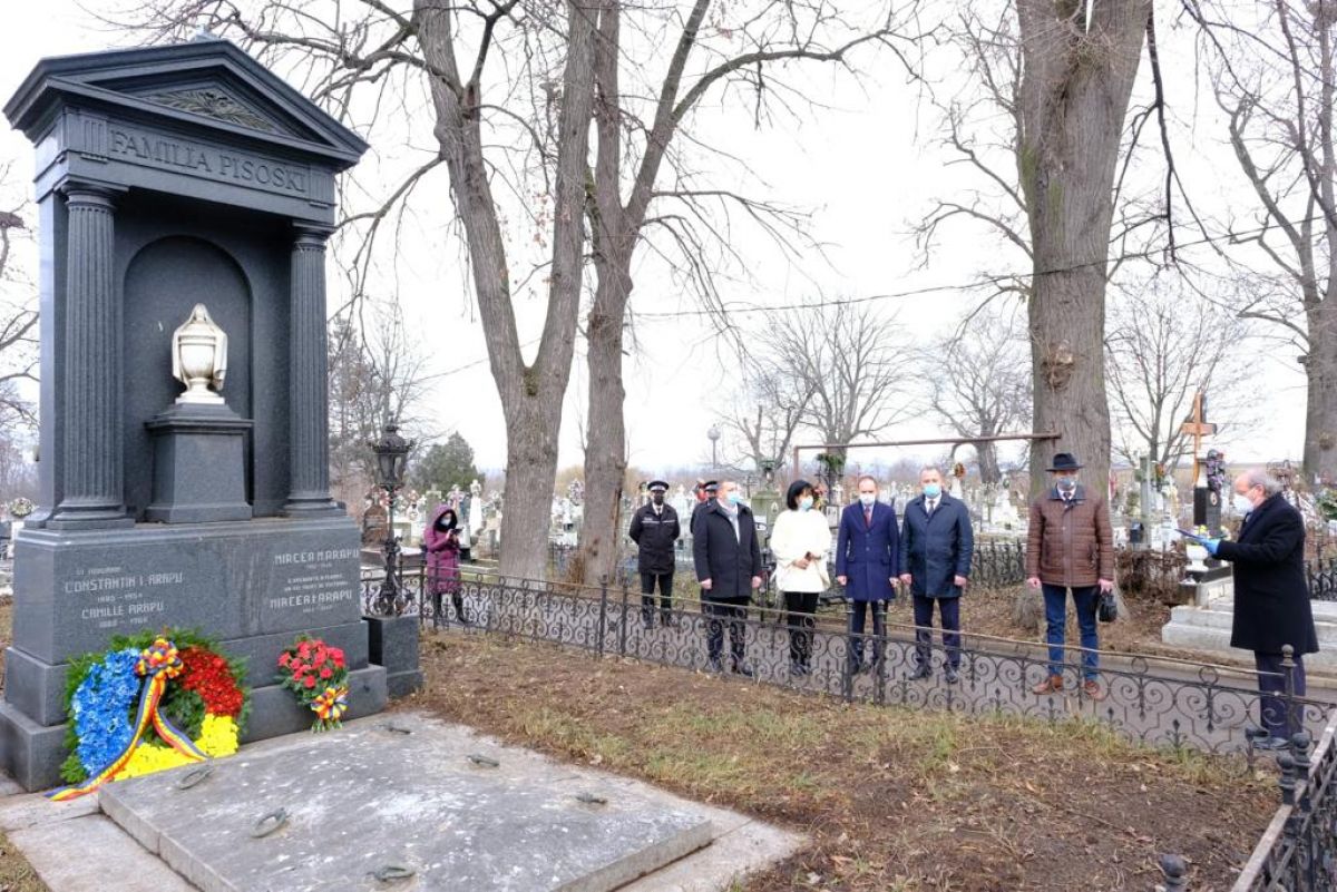 Oficialitățile au depus câte o jerbă de flori la cavoul familiei Pisoski din Cimitirul Eternitatea.