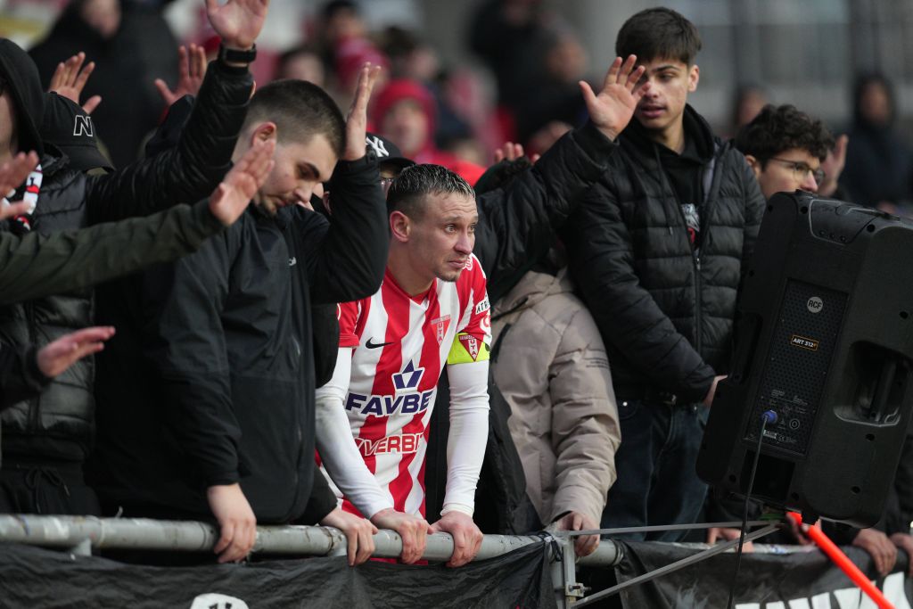 După meci, cu ochii în lacrimi, Valentin Costache s-a alăturat galeriei și și-a luat rămas bun de la suporterii arădeni.