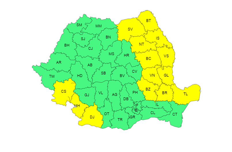Avertizarea vine de la Administrația Județeană de Meteorologie.