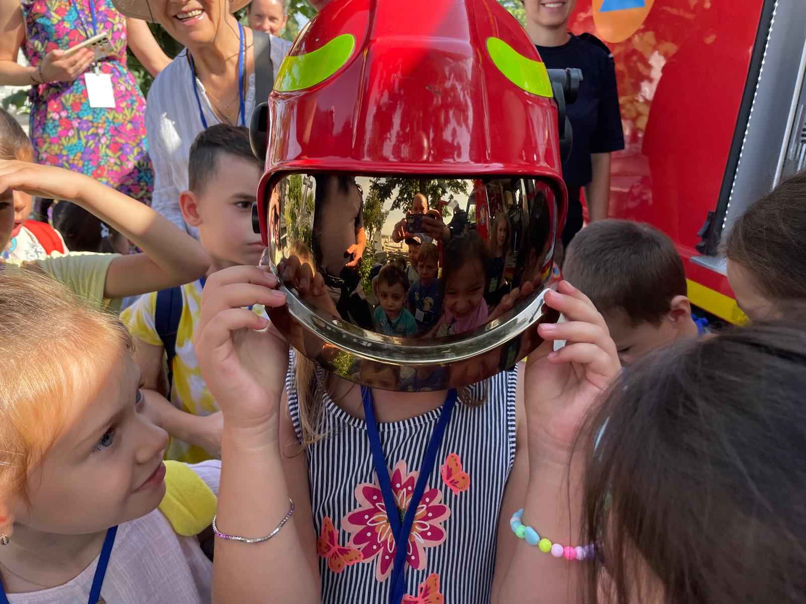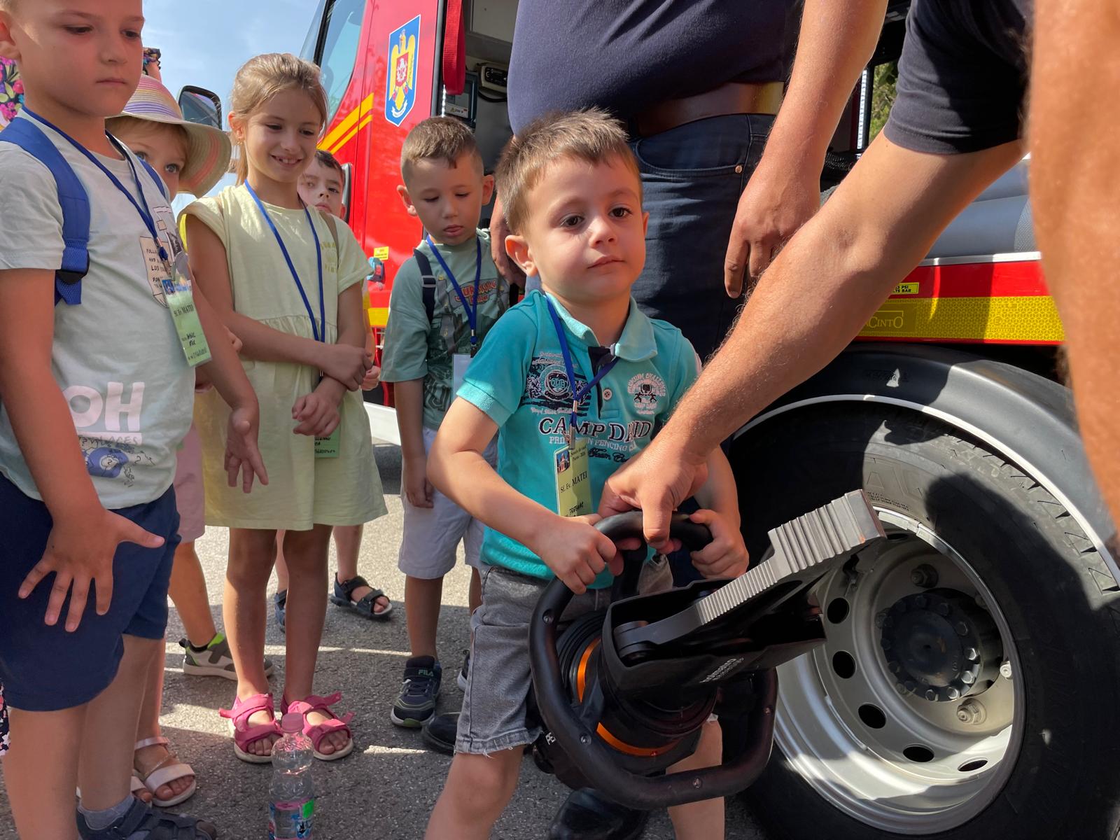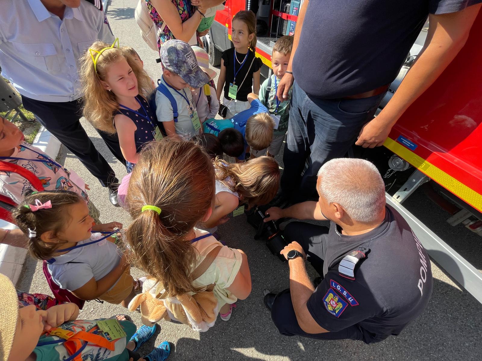 Au avut ocazia să studieze, îndeaproape, autospecialele de stingere și pirotehnică și să probeze echipamentele de protecție folosite de pompieri în misiunile operative.