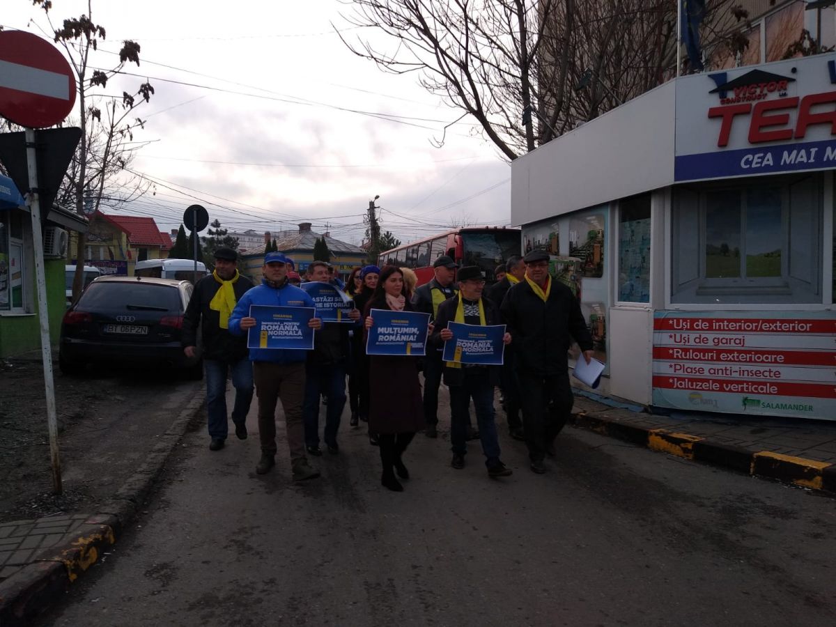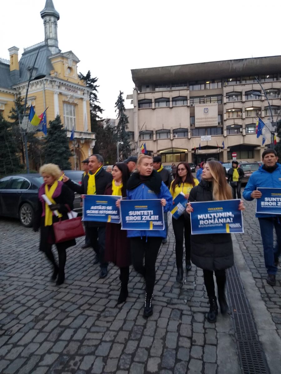Liberalii au pornit din fața sediului județean PNL cu afișe pe care erau inscripționate mesaje de mulțumire pentru botoșăneni: “Astăzi se scrie istoria”, “Sunteți eroii zilei” sau “Mulțumim România”.