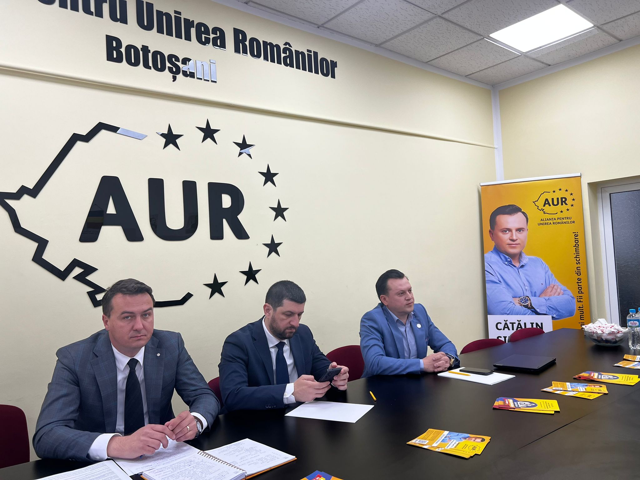 În puține momente din sediul Alianței pentru Unirea Românilor (AUR) Botoșani începe o conferință de presă.