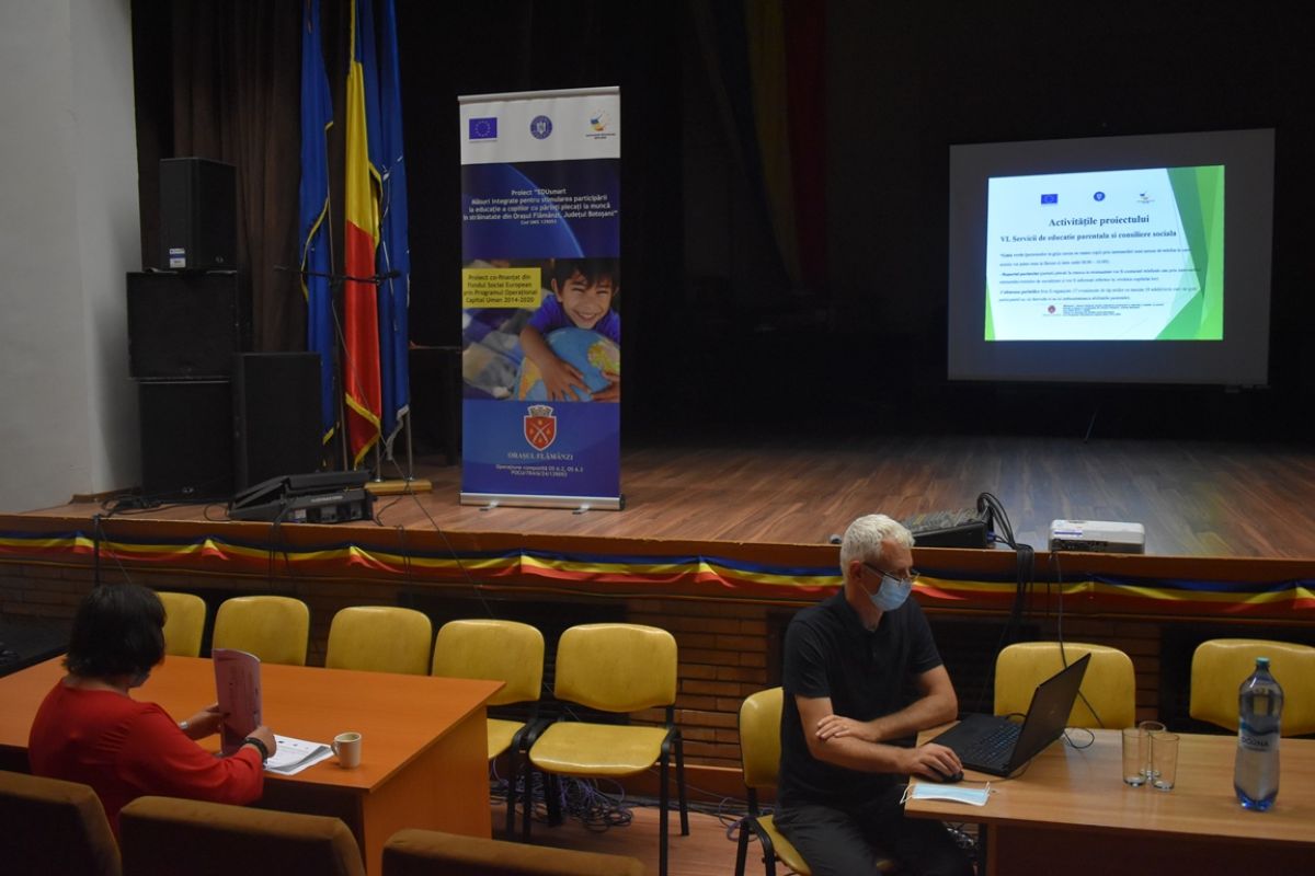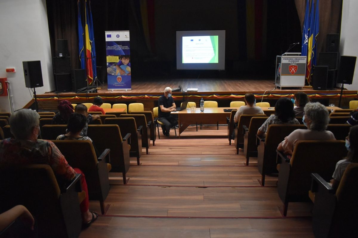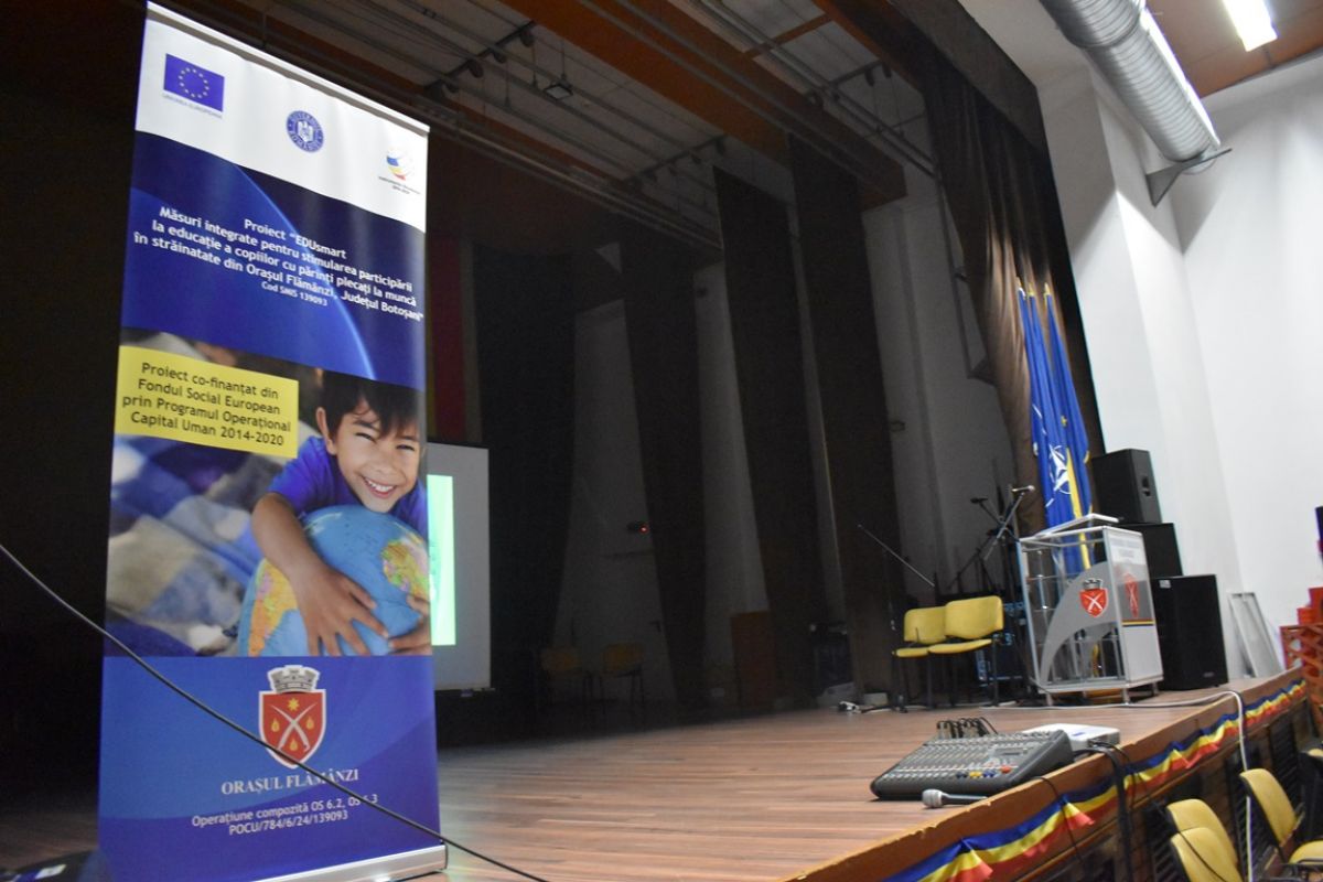 „EDUsmart - Măsuri integrate pentru stimularea participării la educație a copiilor cu părinți plecați la muncă în străinătate din Orașul Flămânzi, Judetul Botoșani, Educație si competențe”, cod SMIS: 139093, este titlul proiectului care a fost lansat joi, 5 august 2021, în sala de spectacole a casei de cultură din centrul urbei, care temporar adăpostește și Primăria.