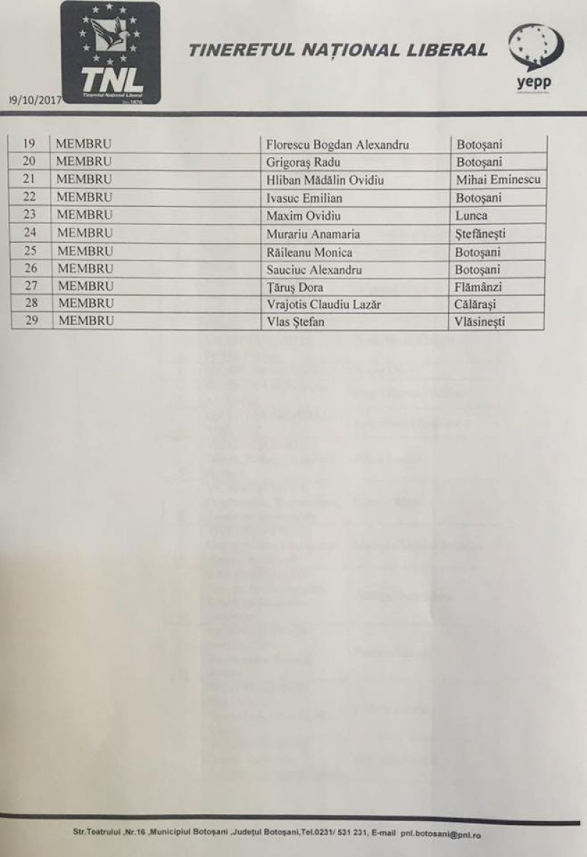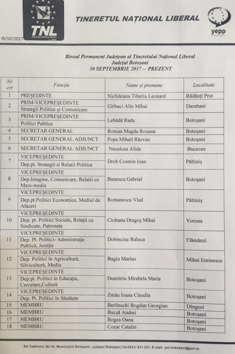 După ce la finele lunii septembrie Tineretul Naţional Liberal din judeţul Botoşani şi-a desemnat noul preşedinte, în prima decadă a lui octombrie s-a stabilit şi noul secretar general.