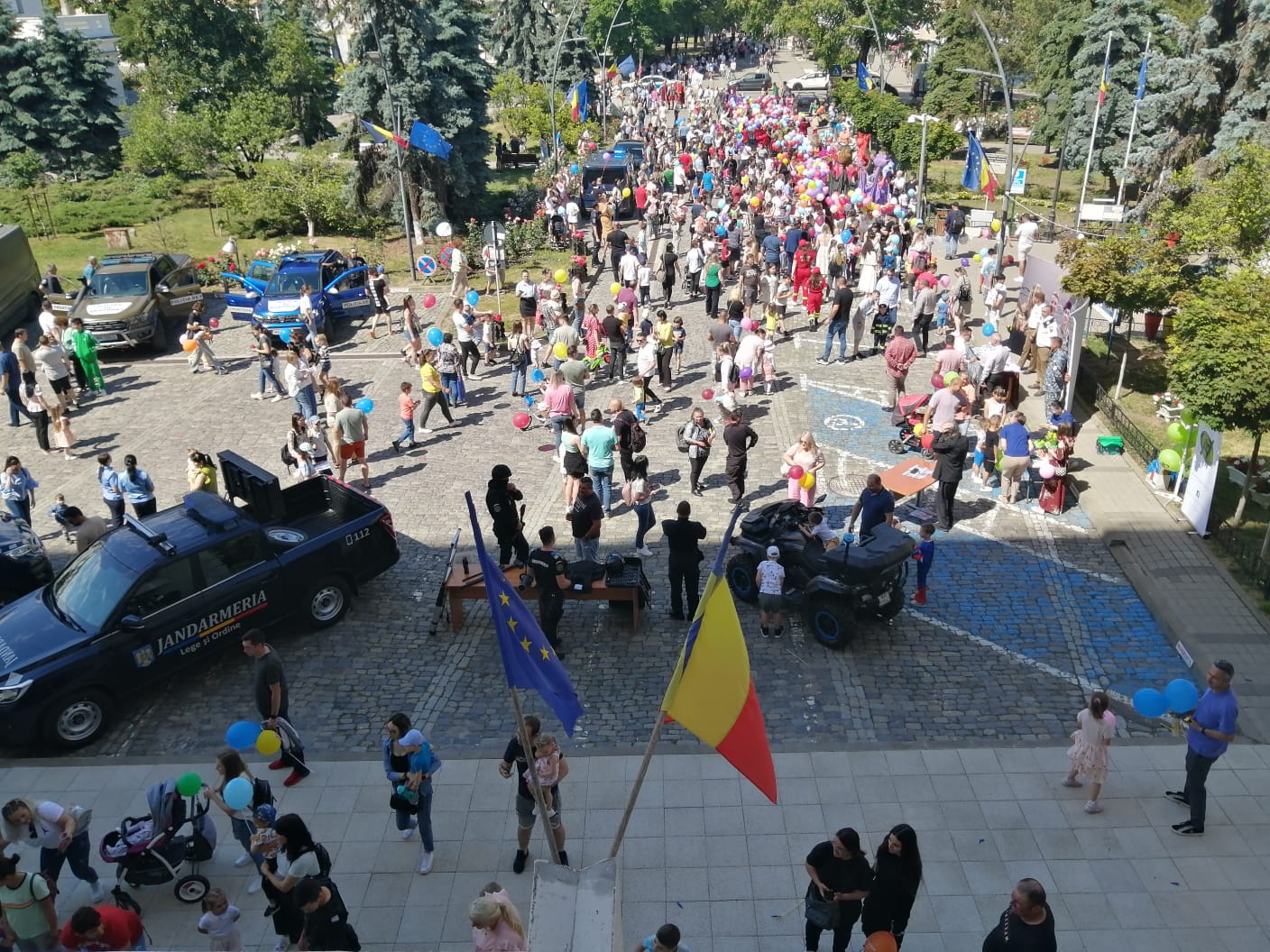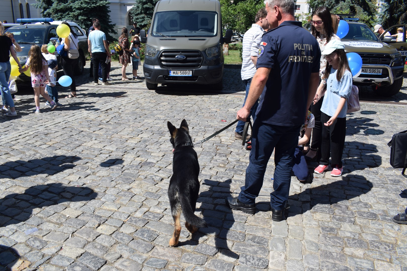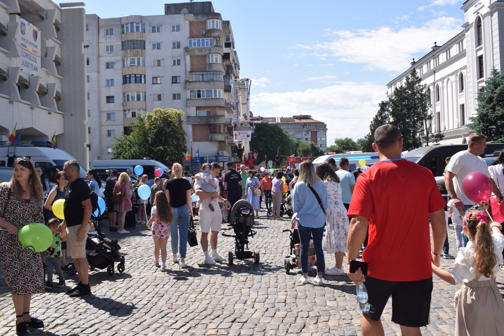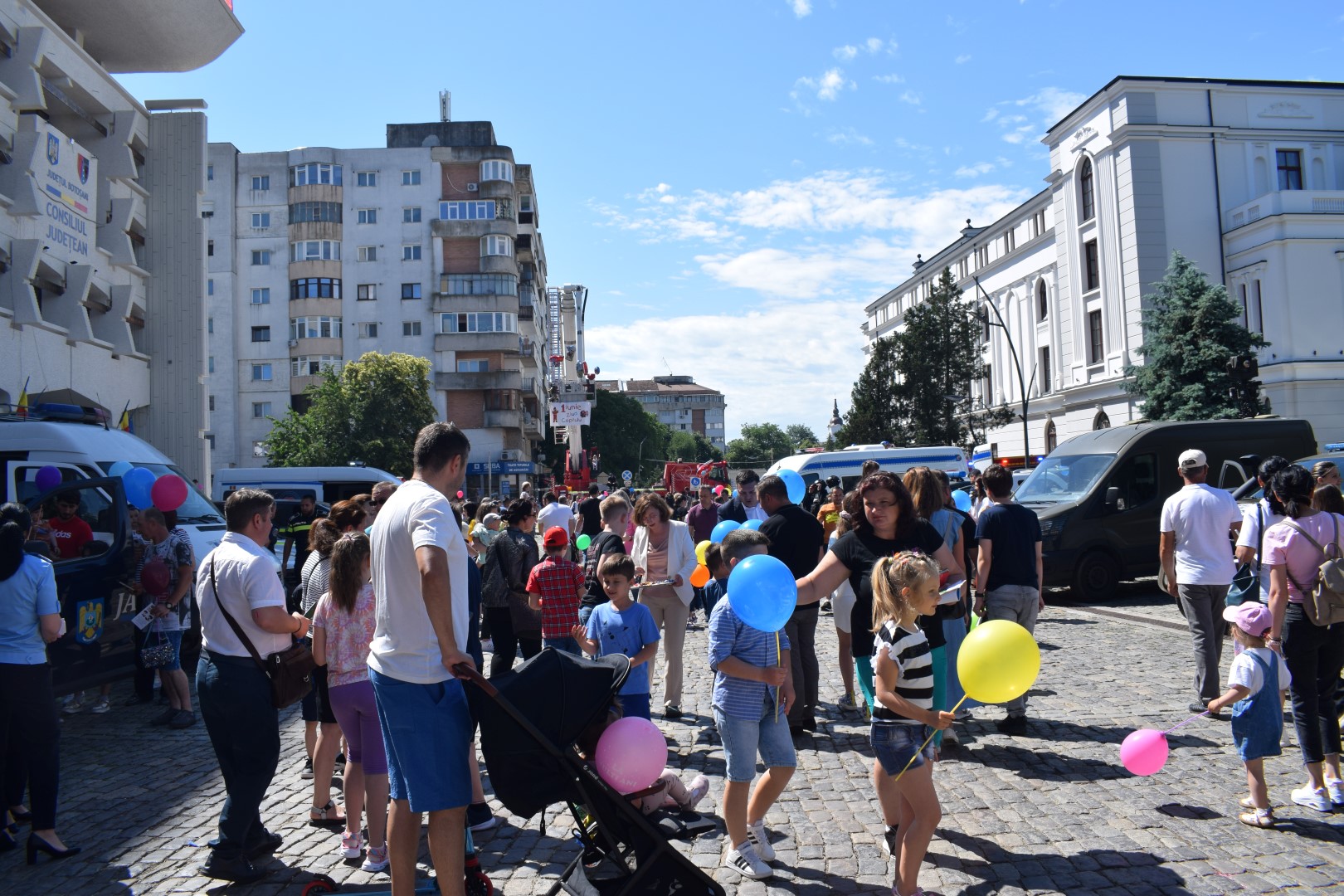 Special pentru evenimentul dedicat copiilor au fost aduse în Piața Revoluției tot felul de echipaje și tehnică specifică instituțiilor MAI. Prefectul Sorin Cornilă a împărțit sute de baloane copiilor prezenți.