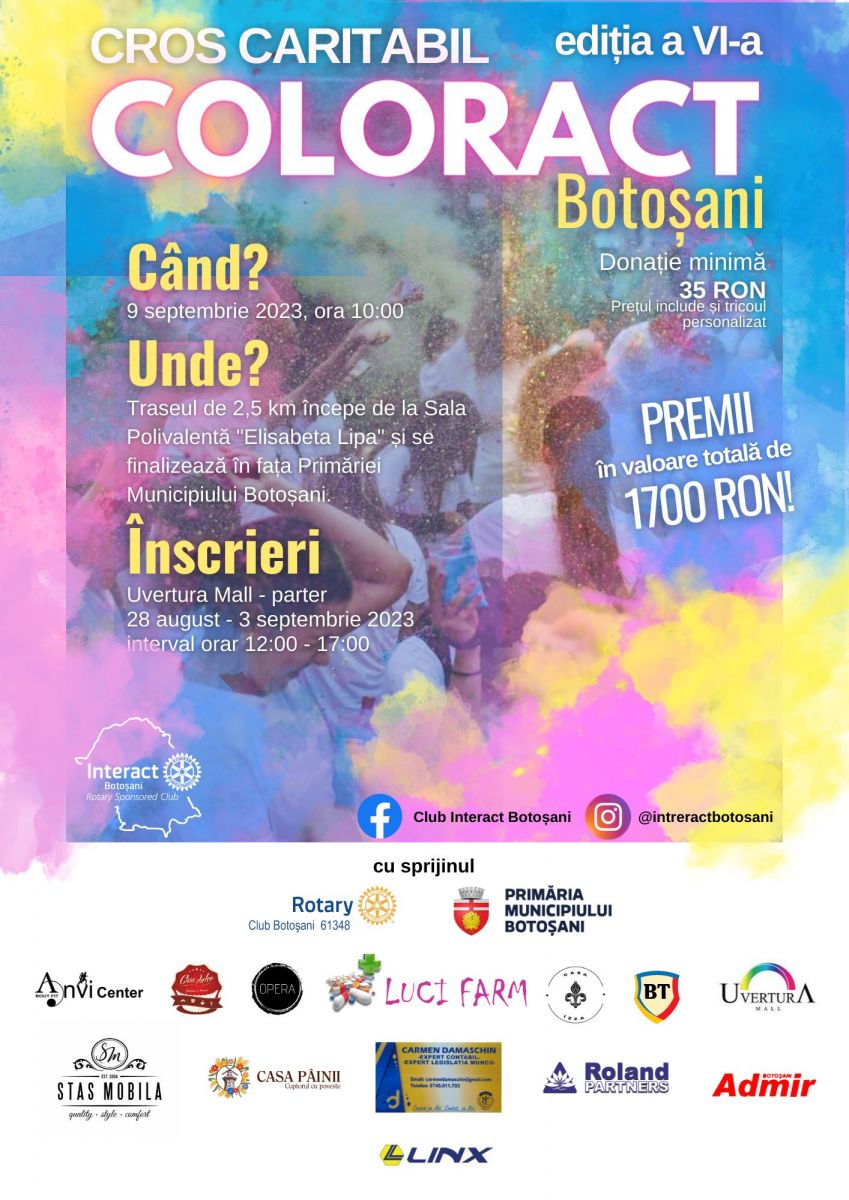 Primăria Municipiului Botoșani împreună cu Rotary Botoșani susține acțiunea tinerilor din Clubul Interact Botoșani și te invită să alergi la cea de-a șasea ediția a celui mai colorat cros al toamnei!