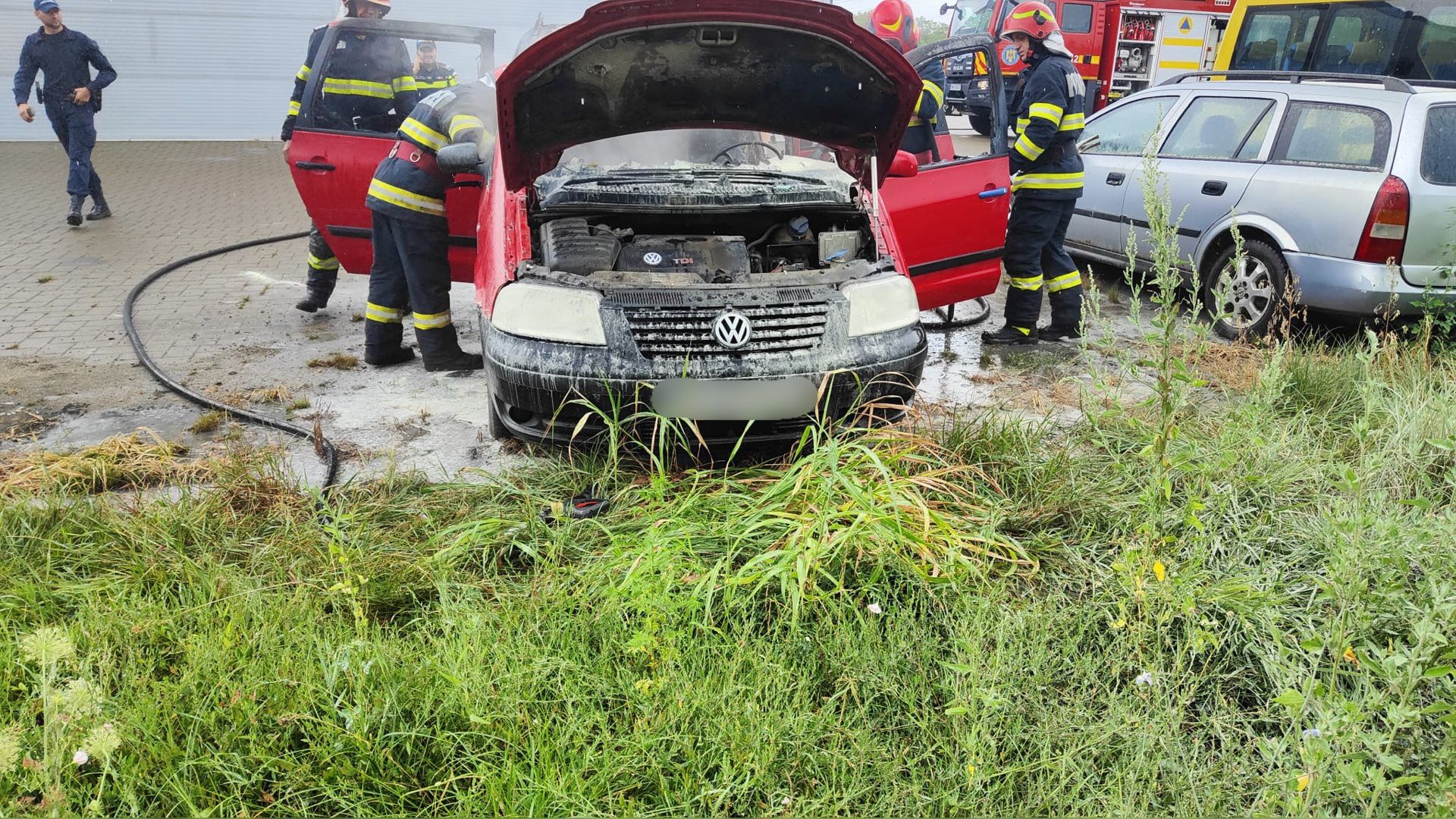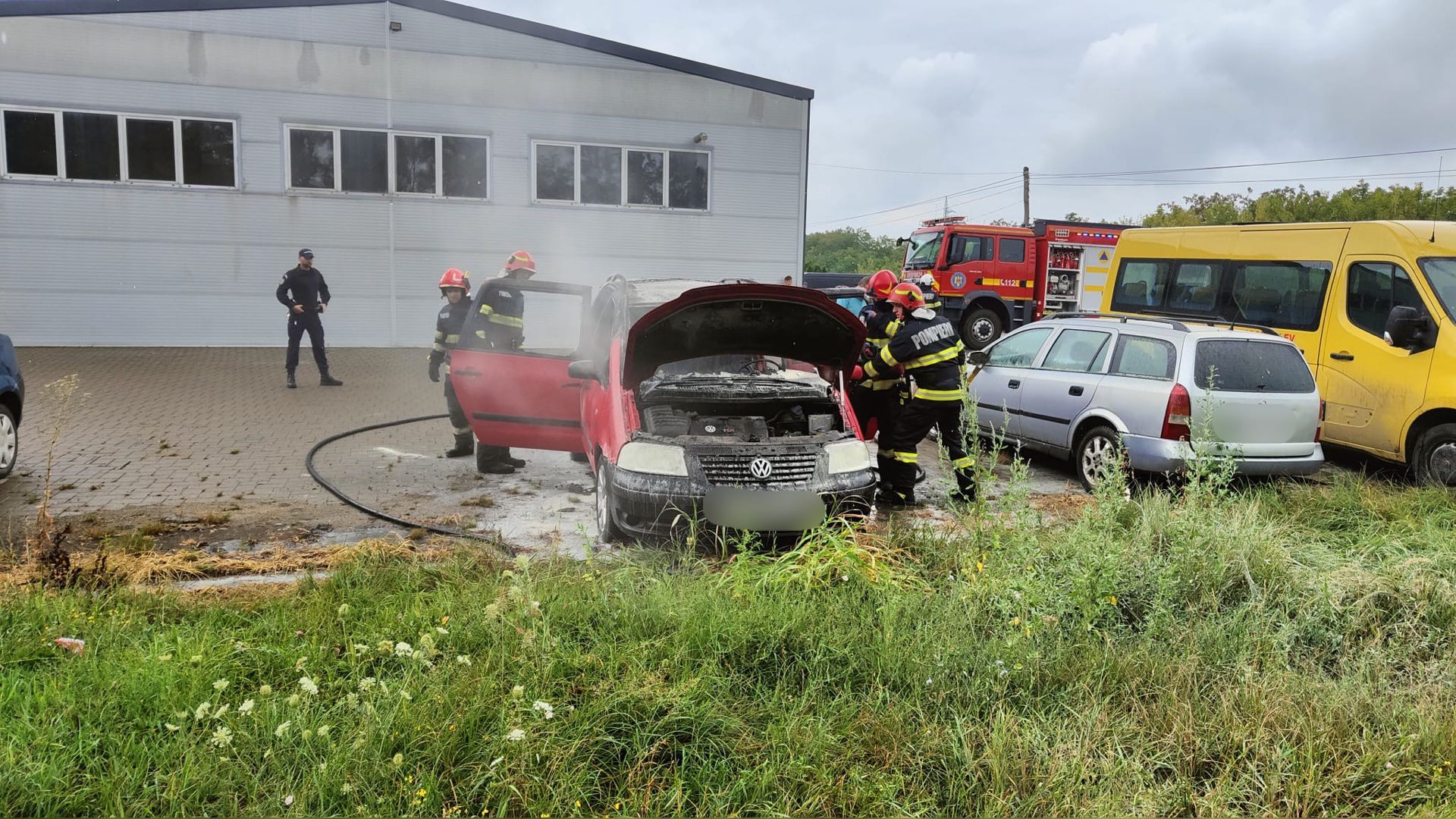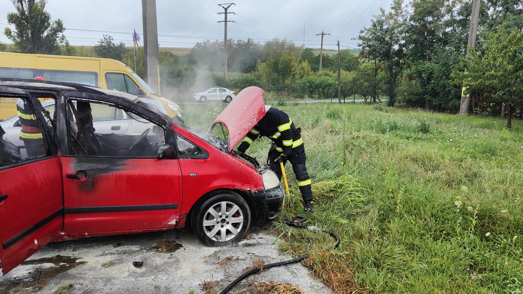 Un autoturism parcat în curtea unui service din orașul Săveni a fost cuprins de flăcări în această după amiază. Un bărbat care trecea prin zonă a observat flăcările și a sunat după ajutor.