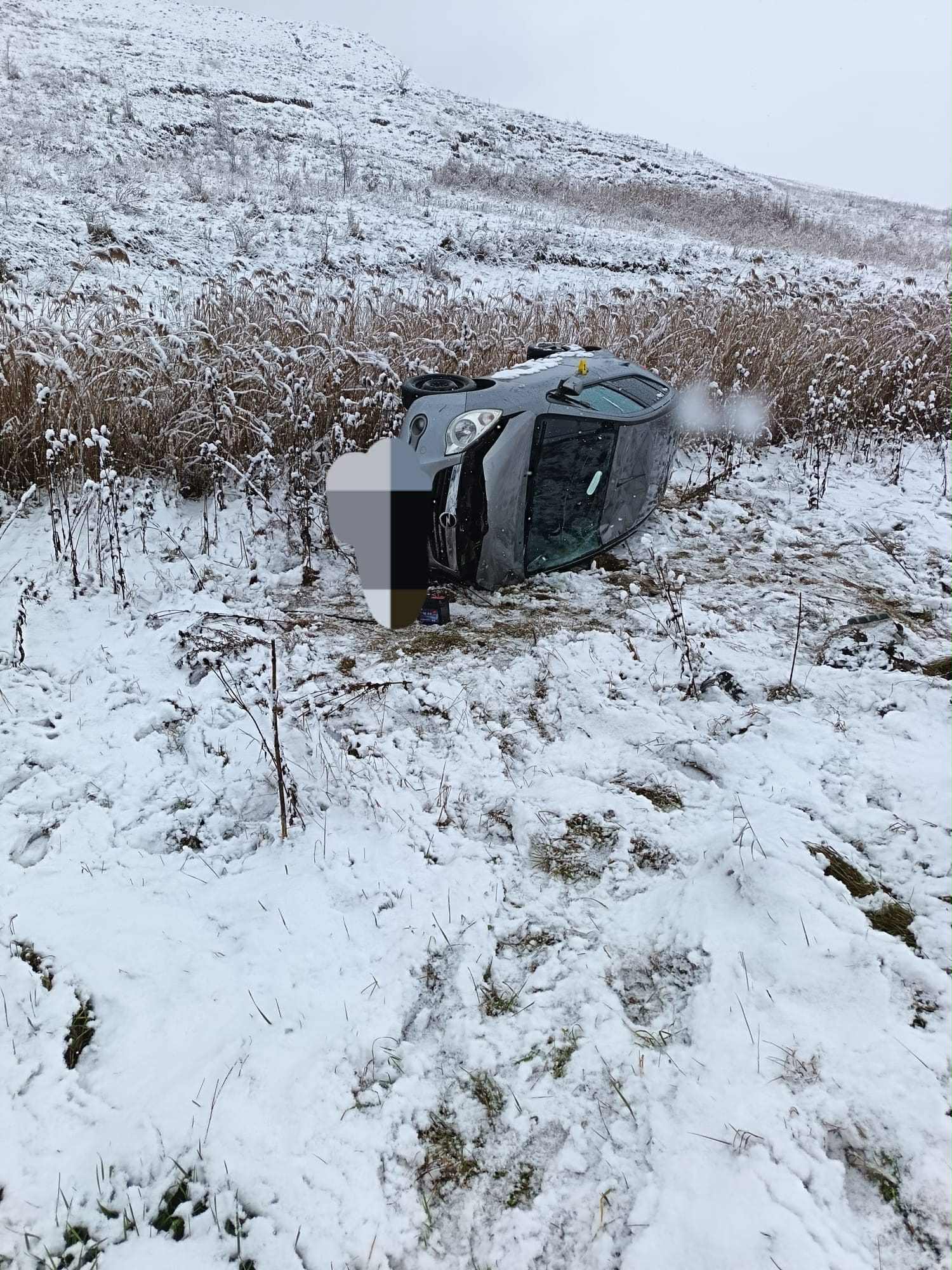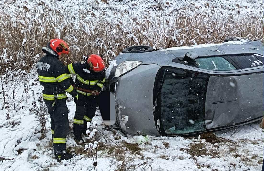 Mașină răsturnată la ieșirea din oraș, o mamă și fiica ei la spital