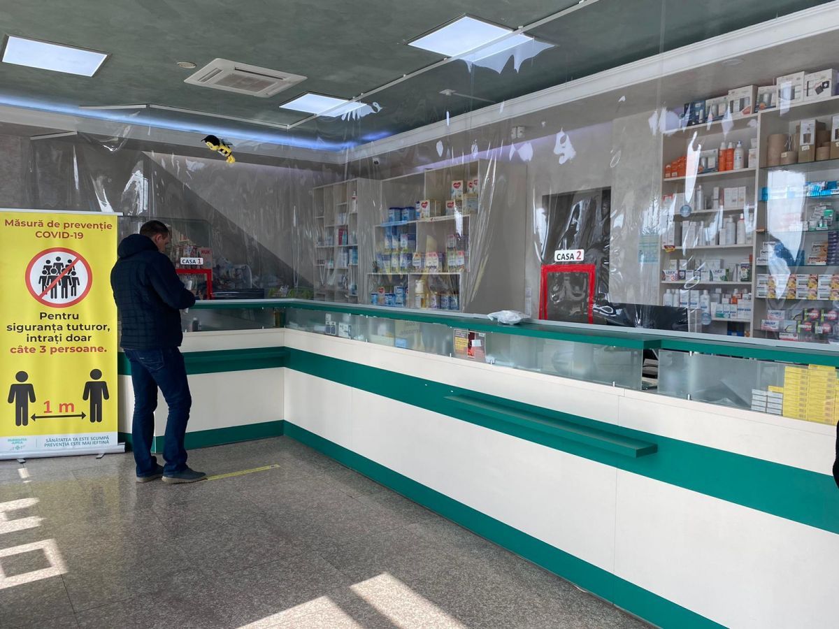 Printre măsurile puse în aplicare în această perioadă se regăsește și cea a pereților de protecție între farmacist și client.