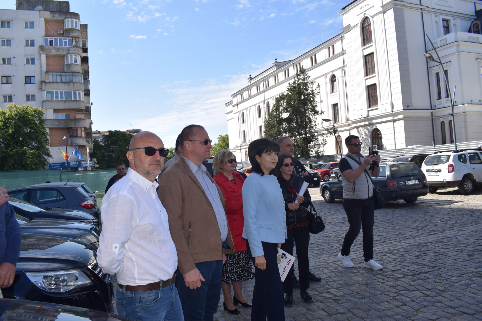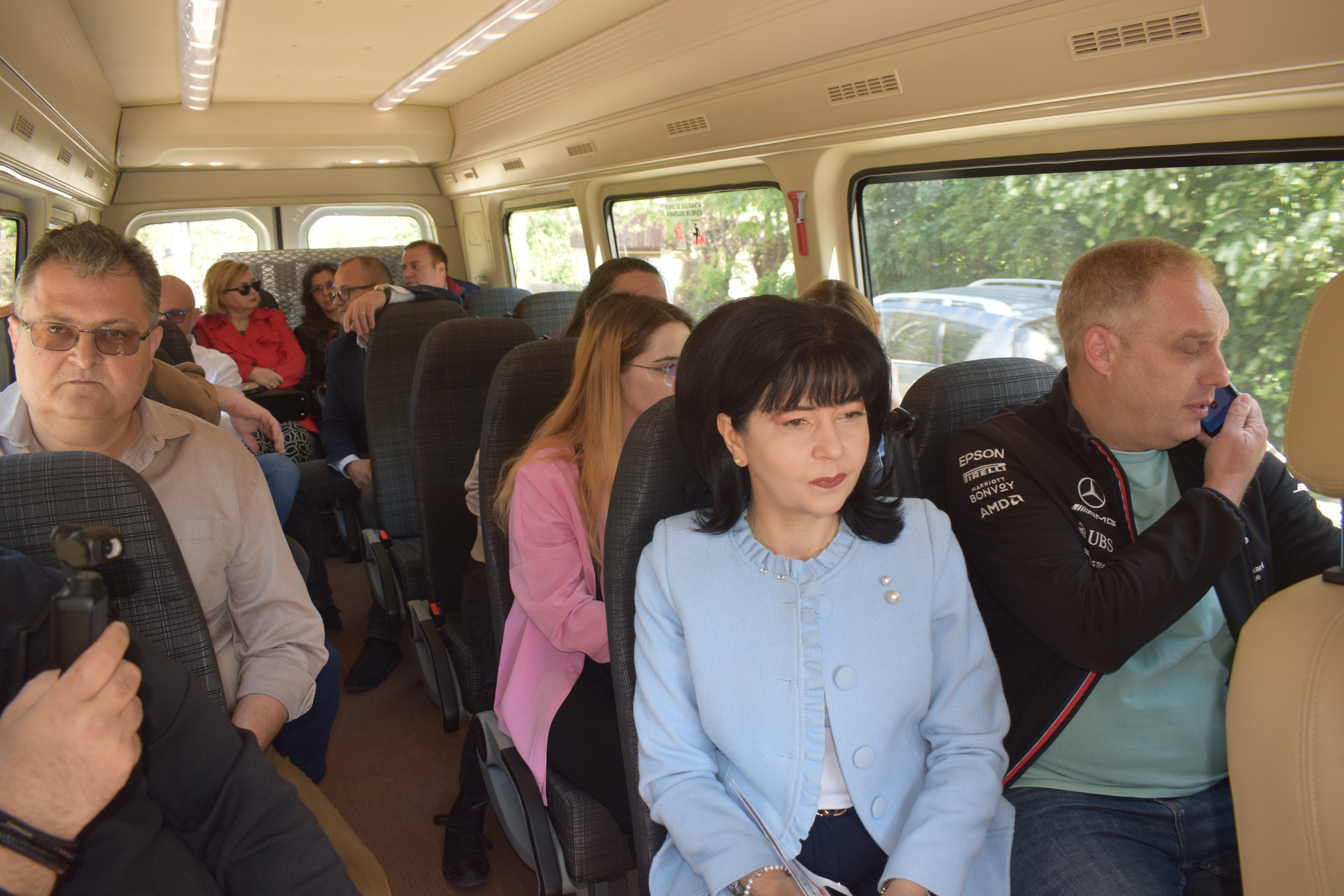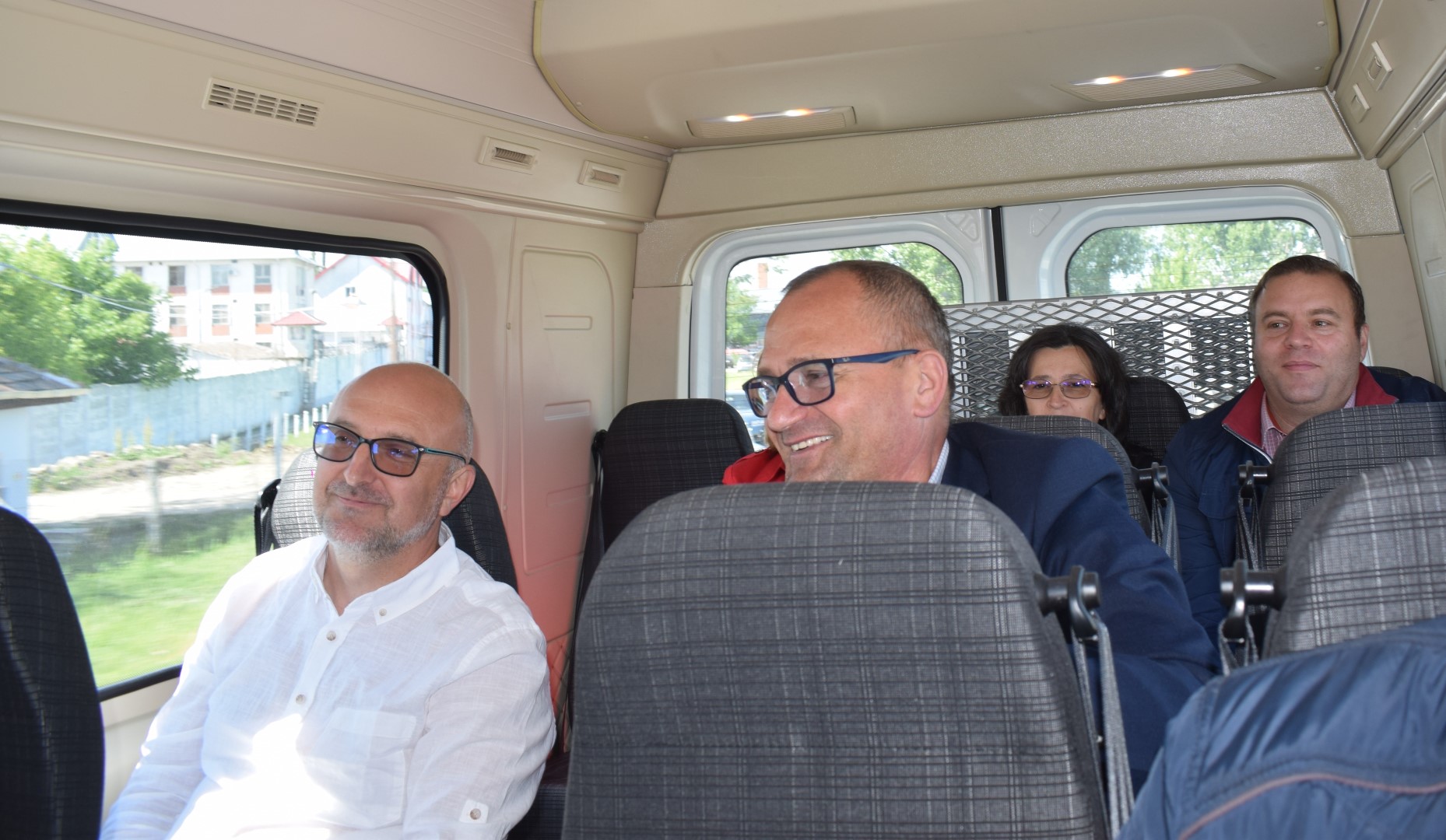 Președintele Consiliului Județean Doina Federovici, vicepreședintele Dorin Birta, administratorul public Cristian Nistor și o parte din echipa de proiect s-au plimbat cu microbuzul până la intrarea în comuna Blândești.