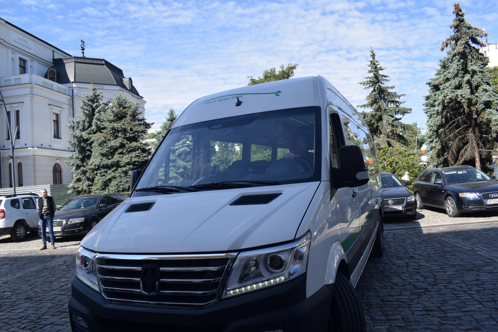 Iar marți a fost adus un astfel de microbuz de către reprezentantul firmei care se ocupă de livrare.
