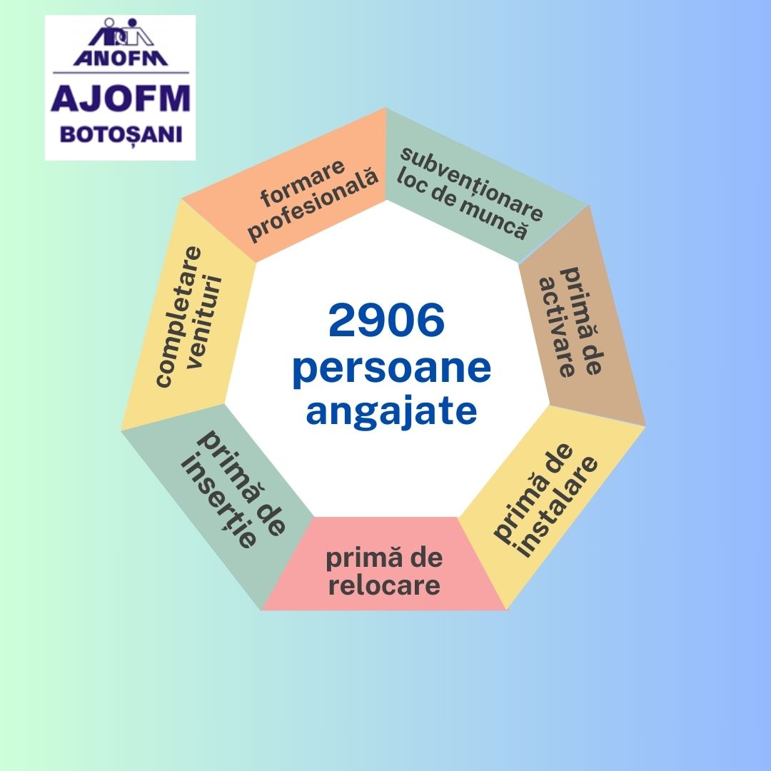În perioada ianuarie-septembrie 2024, au fost integrate pe piața muncii datorită măsurilor de stimulare a ocupării forței de muncă implementate de Agenția Județeană pentru Ocuparea Forței de Muncă Botoșani un număr total de 2.906 persoane.
