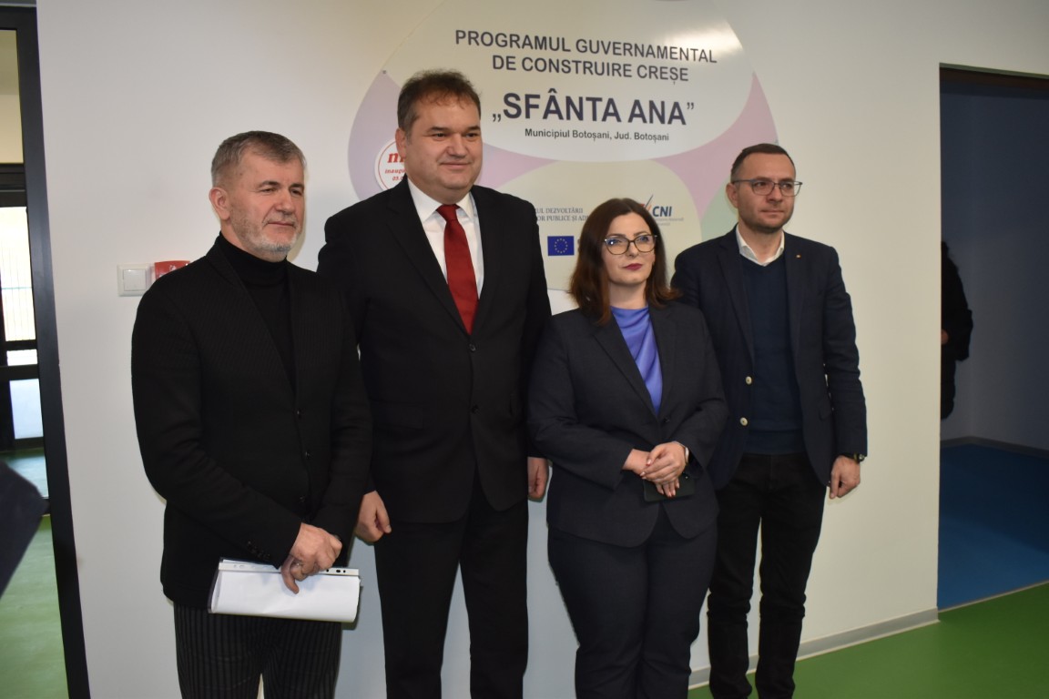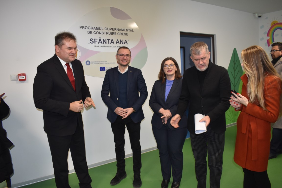 În acest program au fost construite și sunt în construcție în total 242 de creșe în toate județele țării. Puțin peste jumătate sunt pe finanțare națională 131 și 11 sunt pe finanțare prin PNRR. În județul Botoșani avem deocamdată cuprinse 6 astfel de creșe, prima creșă finalizată astăzi, mai avem câte o creșă la Bucecea, la Dorohoi, Darabani și într-o altă localitate.”