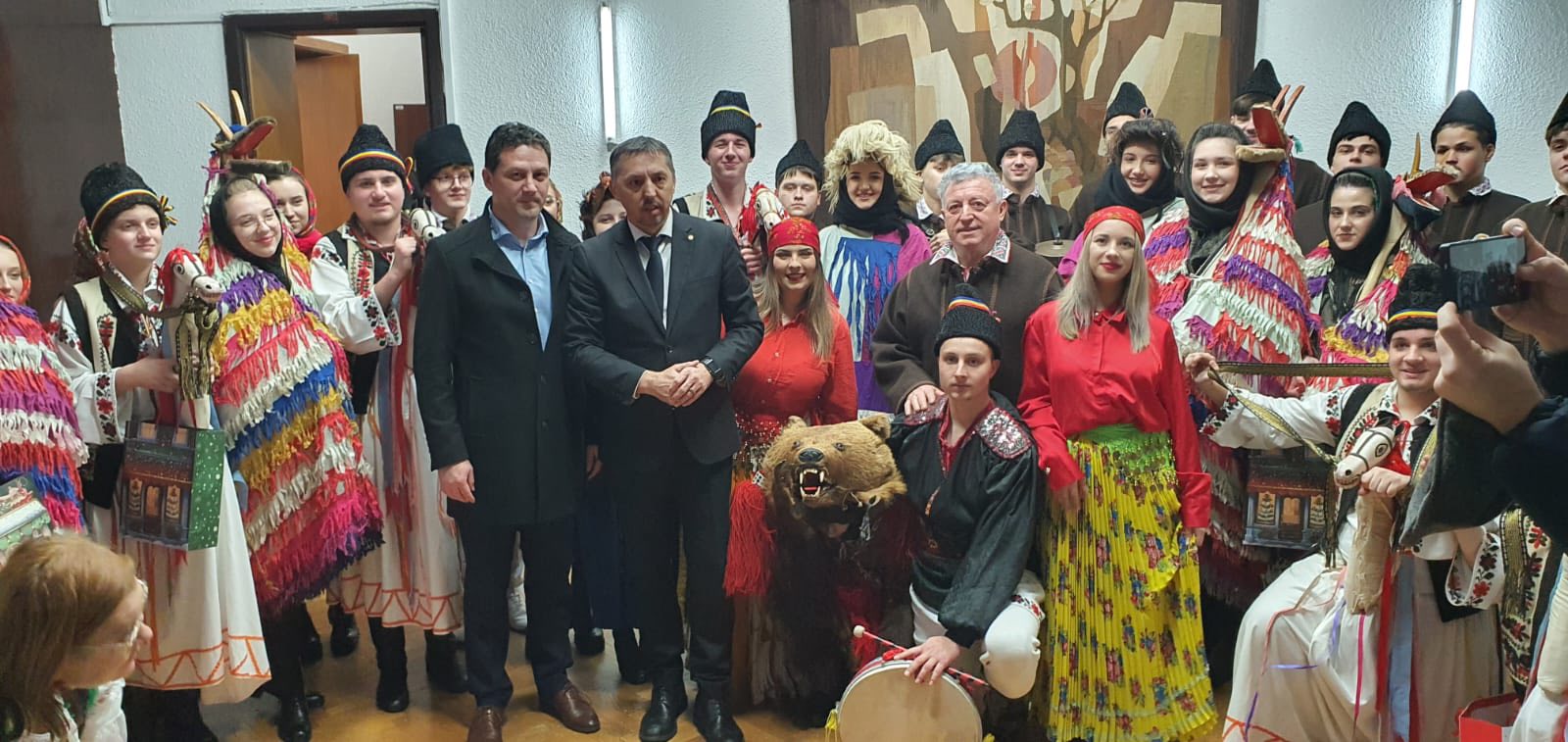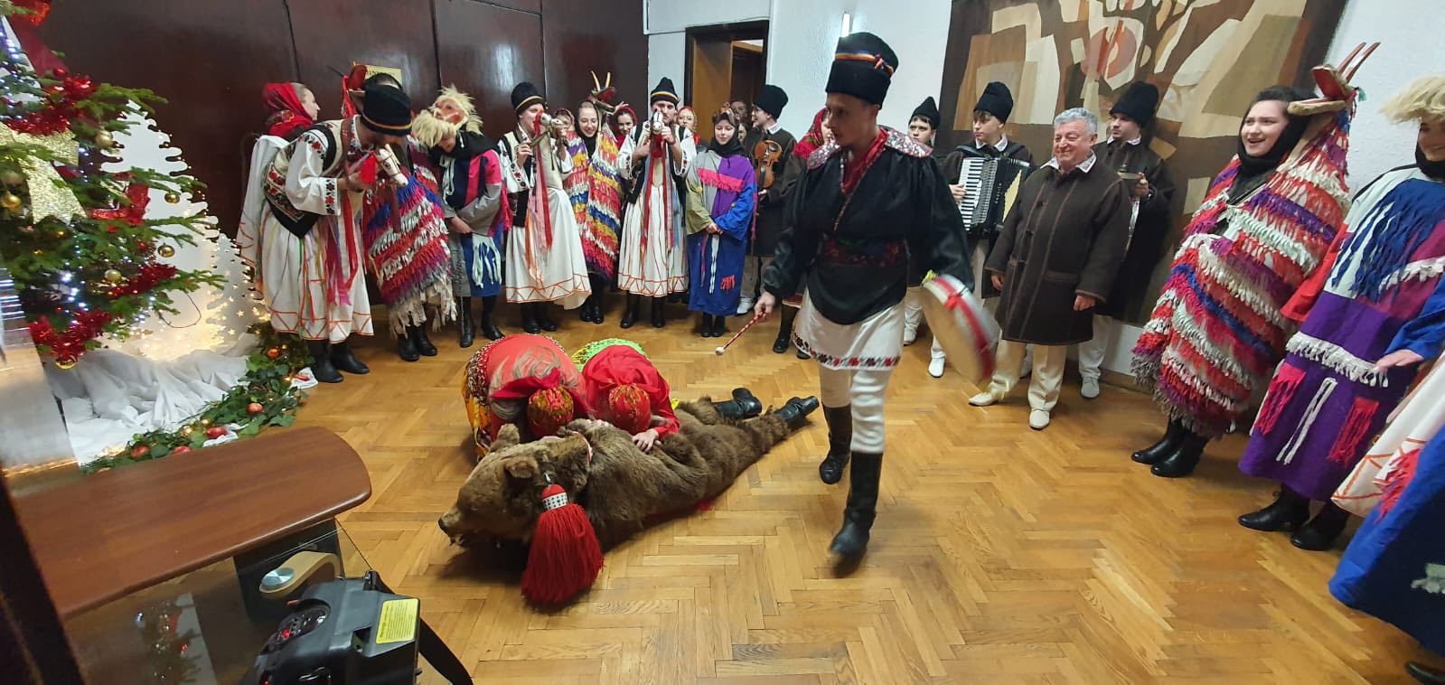 Datinile și obiceiurile de iarnă din zona județului Botoșani au răsunat în clădirea Ministerului Educației și Cercetării și i-au încântat pe toți cei care au dorit să fie martori ai unor momente minunate, transformate de copii într-un spectacol autentic, în care colindele și urăturile reprezentative zonei s-au îmbinat cu dansuri tradiționale, ritualuri specifice iernii și momente coregrafice complexe.
