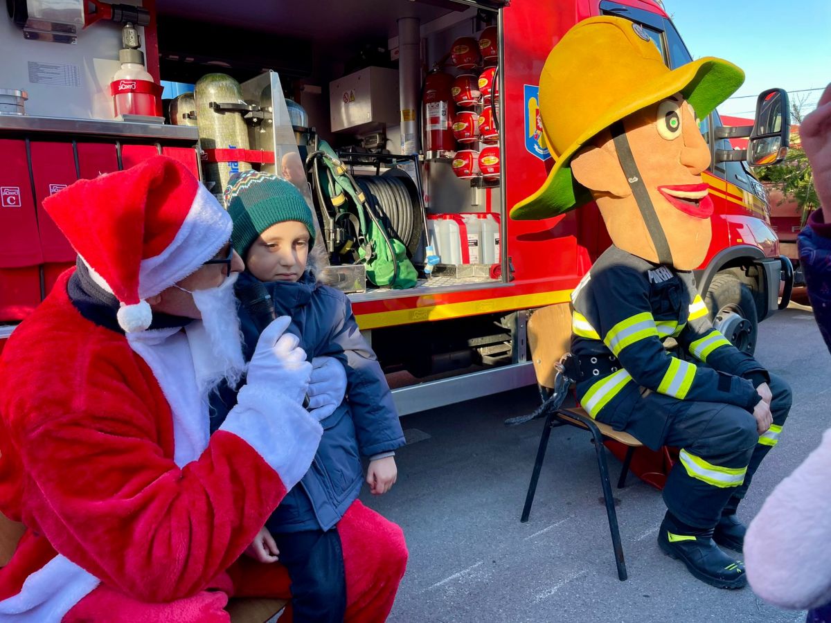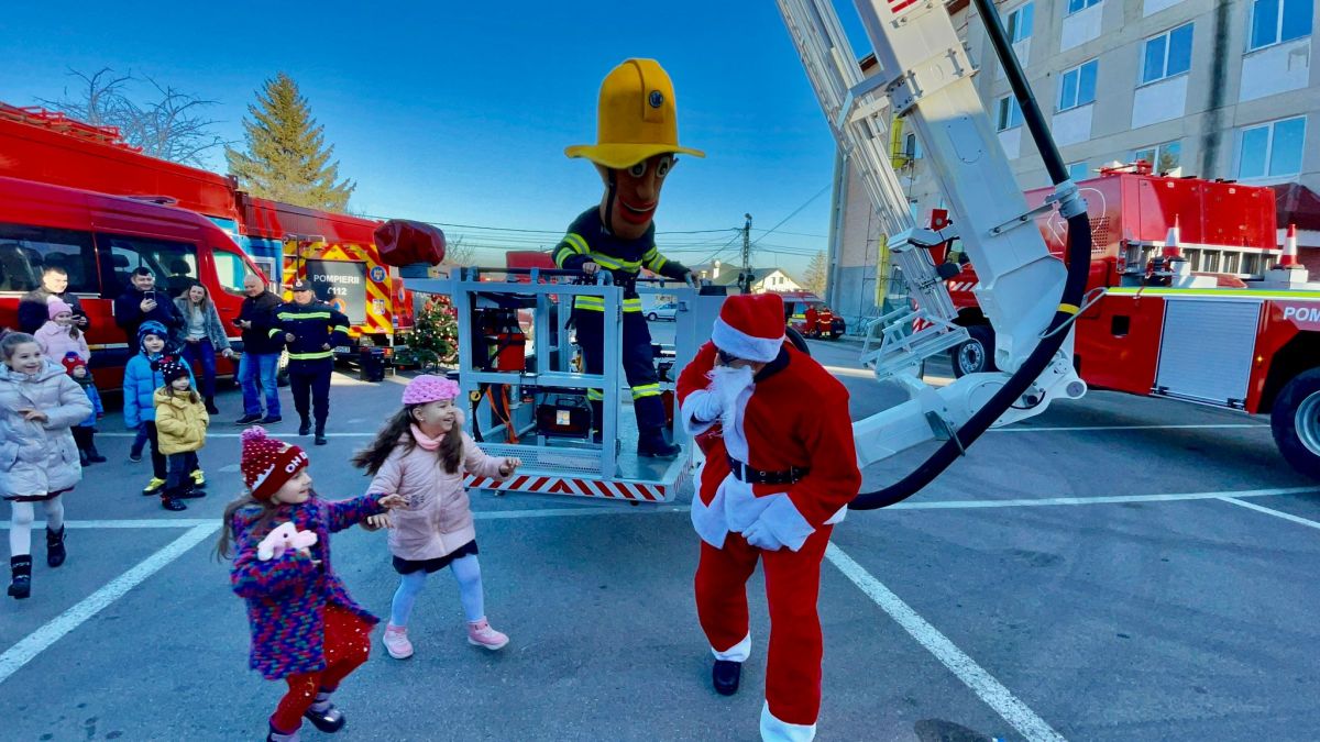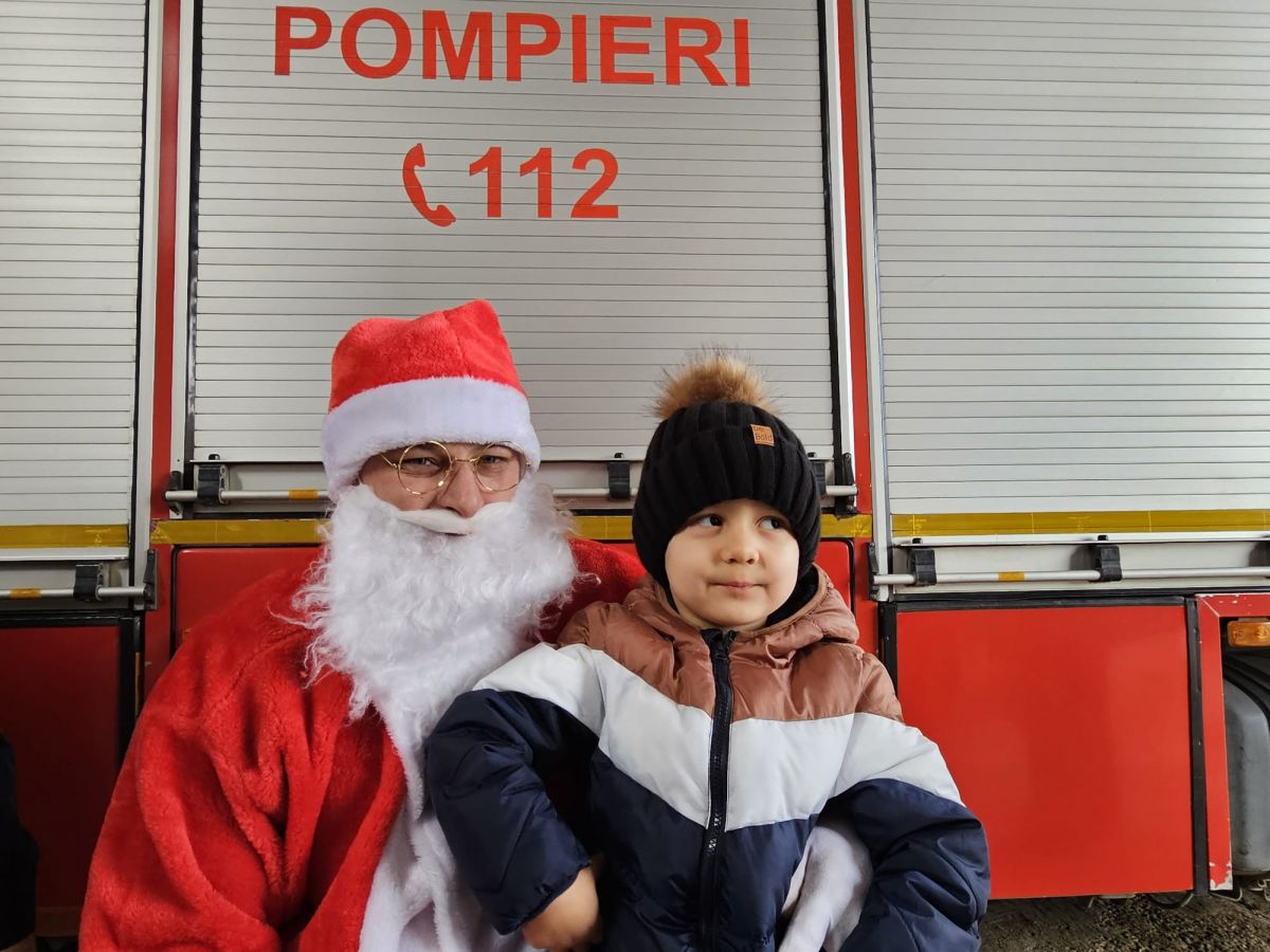 Moș Crăciun a ajuns mai devreme la copiii pompierilor din Botoșani care vor fi la serviciu, în seara de Ajun. Și pentru că nu a nins, și-a pus sania în cui și a venit cu autospeciala de intervenție.