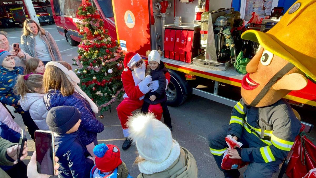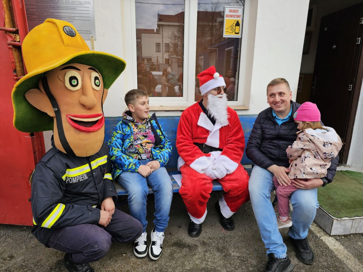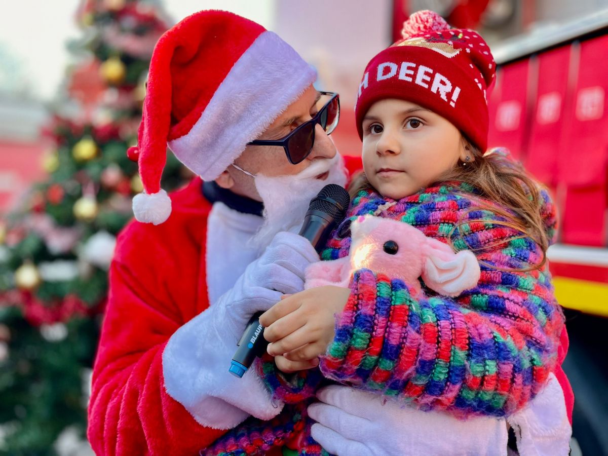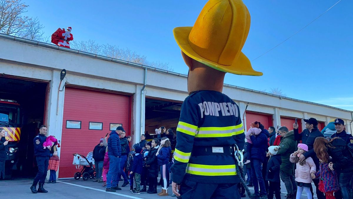 Moș Crăciun a ajuns mai devreme la copiii pompierilor din Botoșani care vor fi la serviciu, în seara de Ajun. Și pentru că nu a nins, și-a pus sania în cui și a venit cu autospeciala de intervenție.