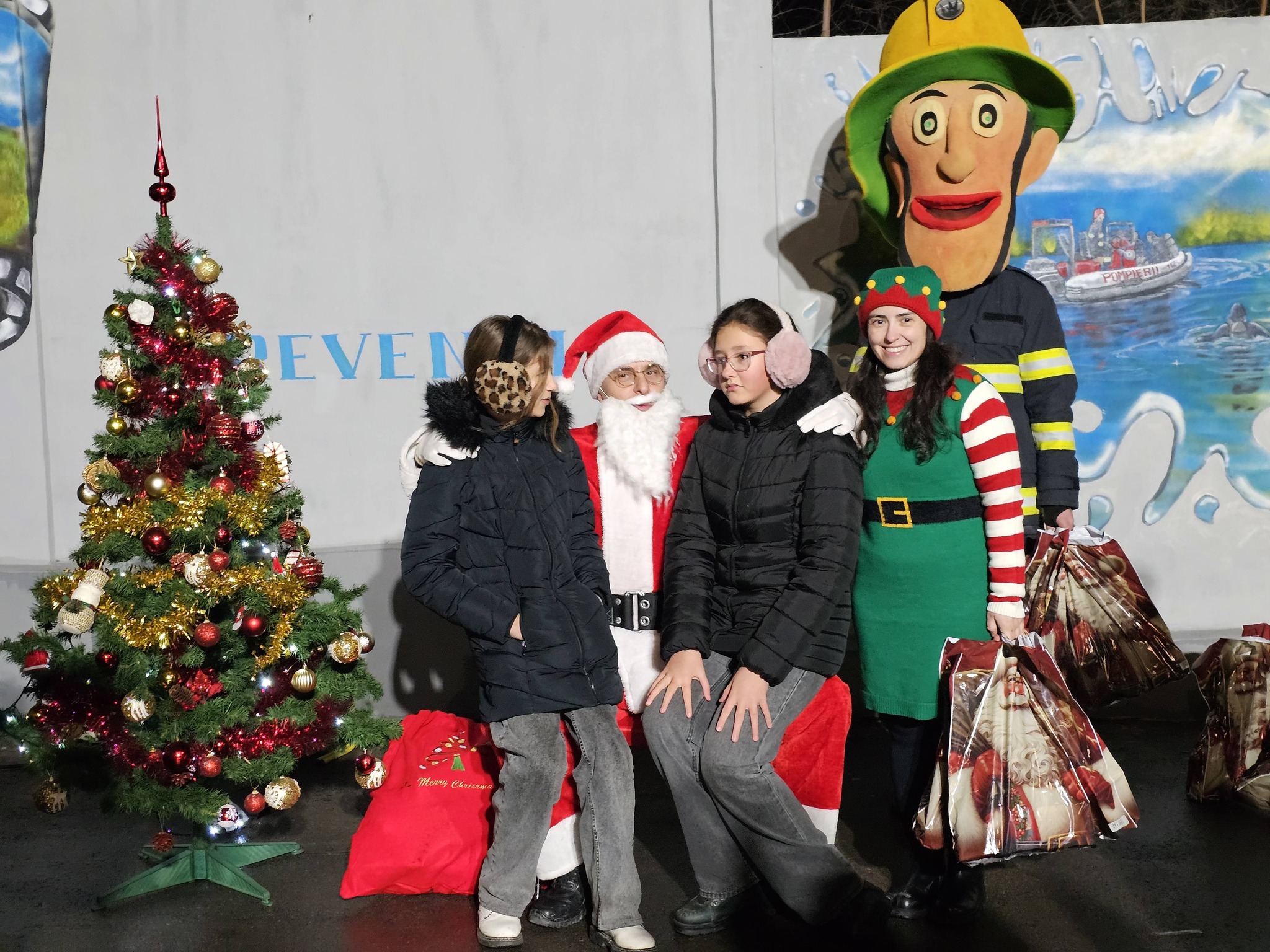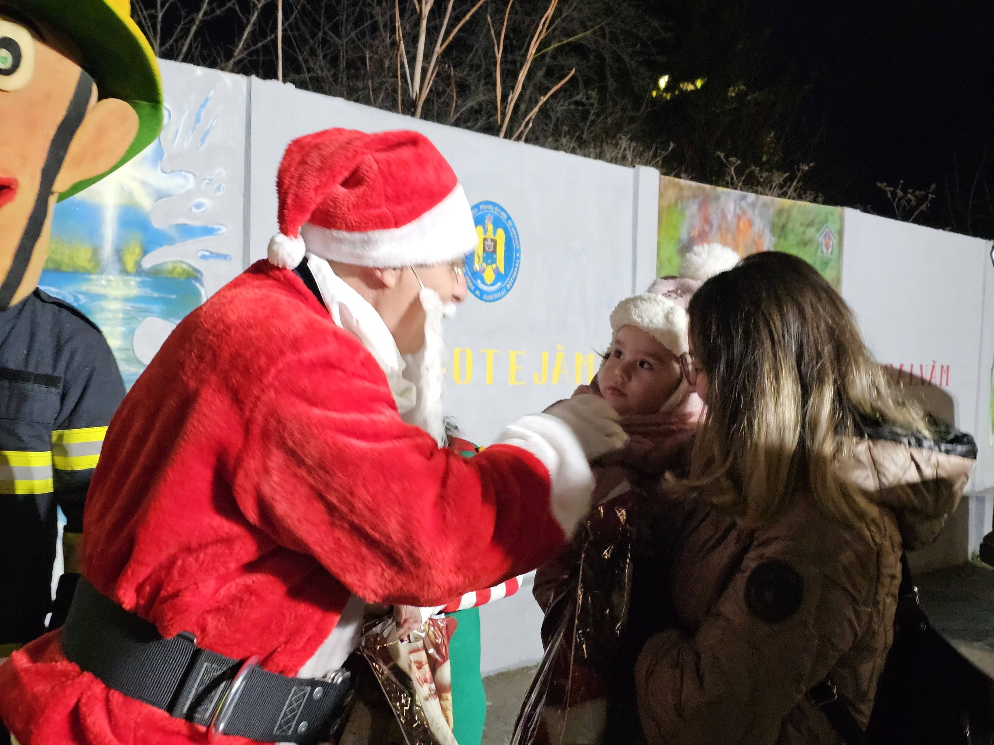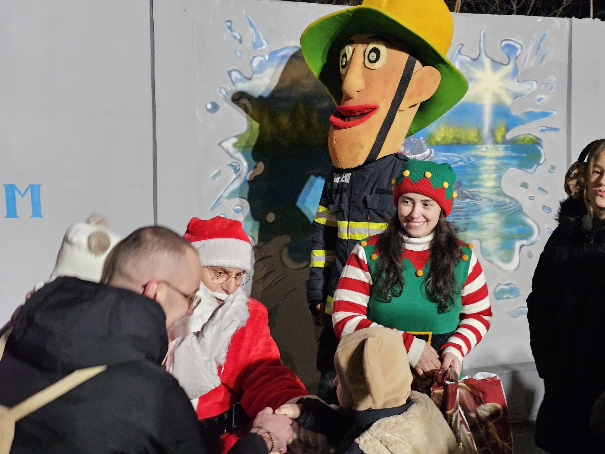 Împrietenindu-se pe loc, cel mai cunoscut pompier din lume și cel mai simpatic bătrânel au împărțit, împreună, binemeritatele cadouri copiilor care au fost cuminți tot anul — dar nu înainte ca fiecare micuț să ofere un colind, o poezie sau o urare.