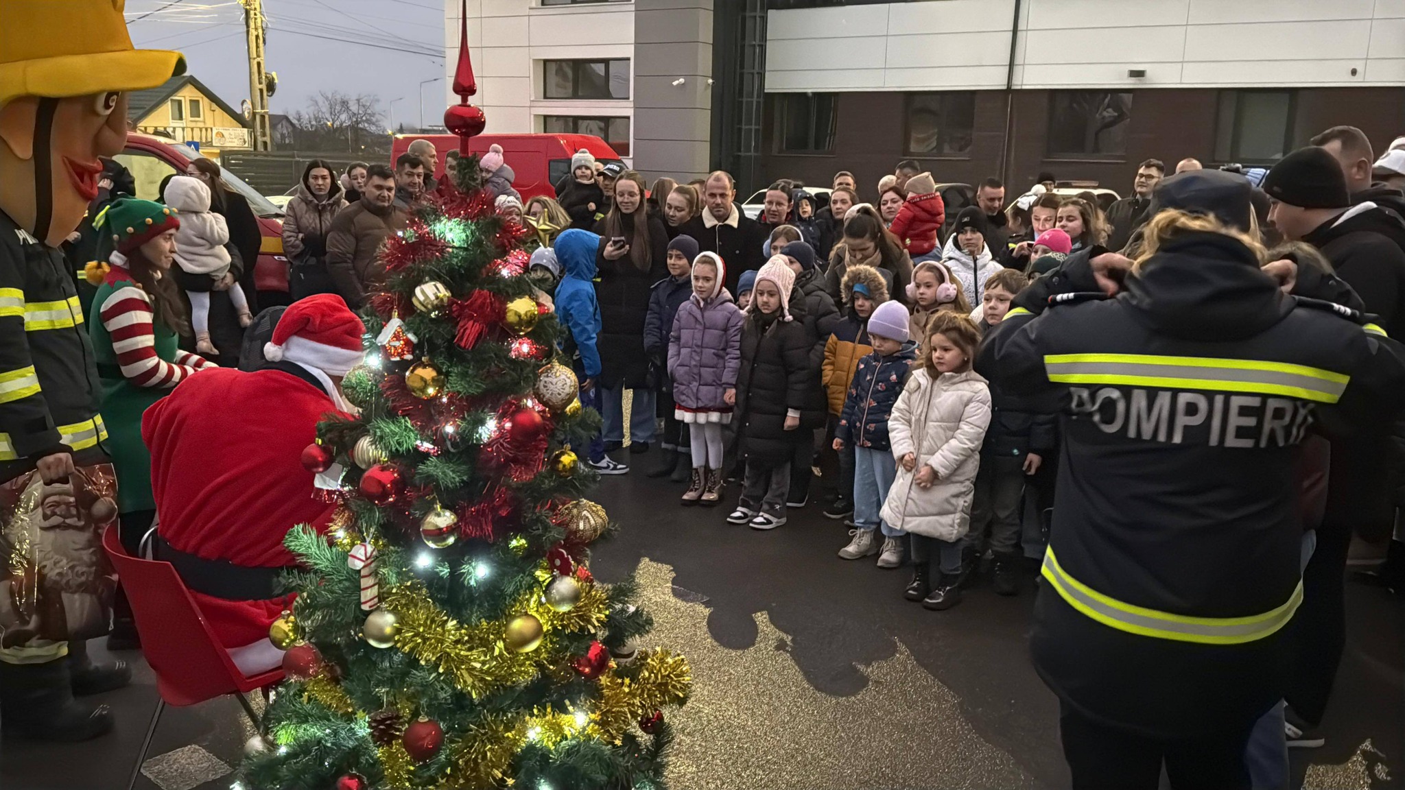 Moș Crăciun a venit cu autospeciala de intervenție la copiii pompierilor
