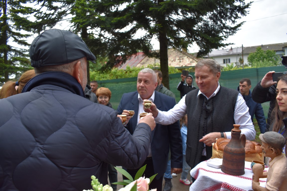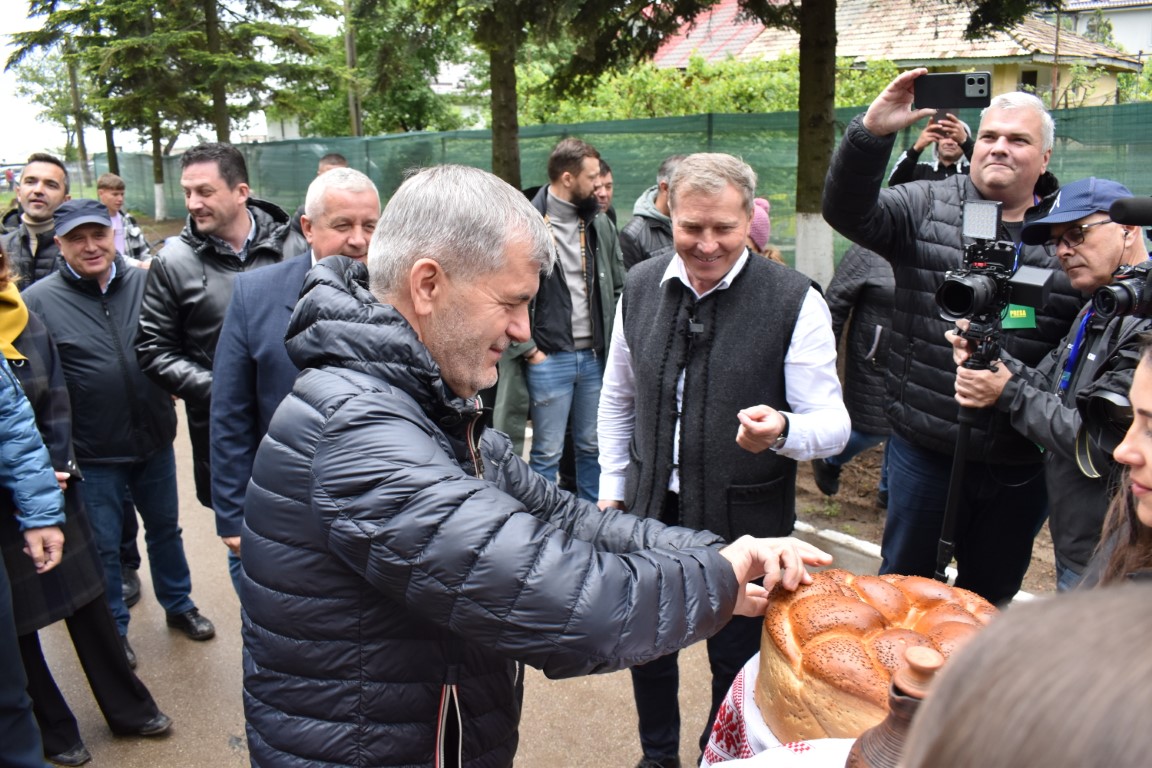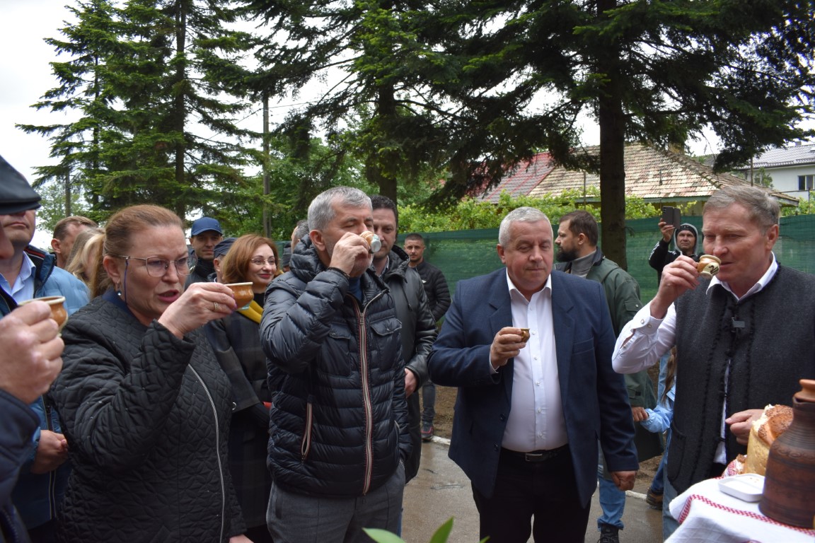 „Vă primim tradițional, așa cum o facem de fiecare dată, aici la Botoșani. Cu colac, sare, țuică...”, a continuat el îmbiind invitații să guste din ceea ce s-a pregătit pentru primire.