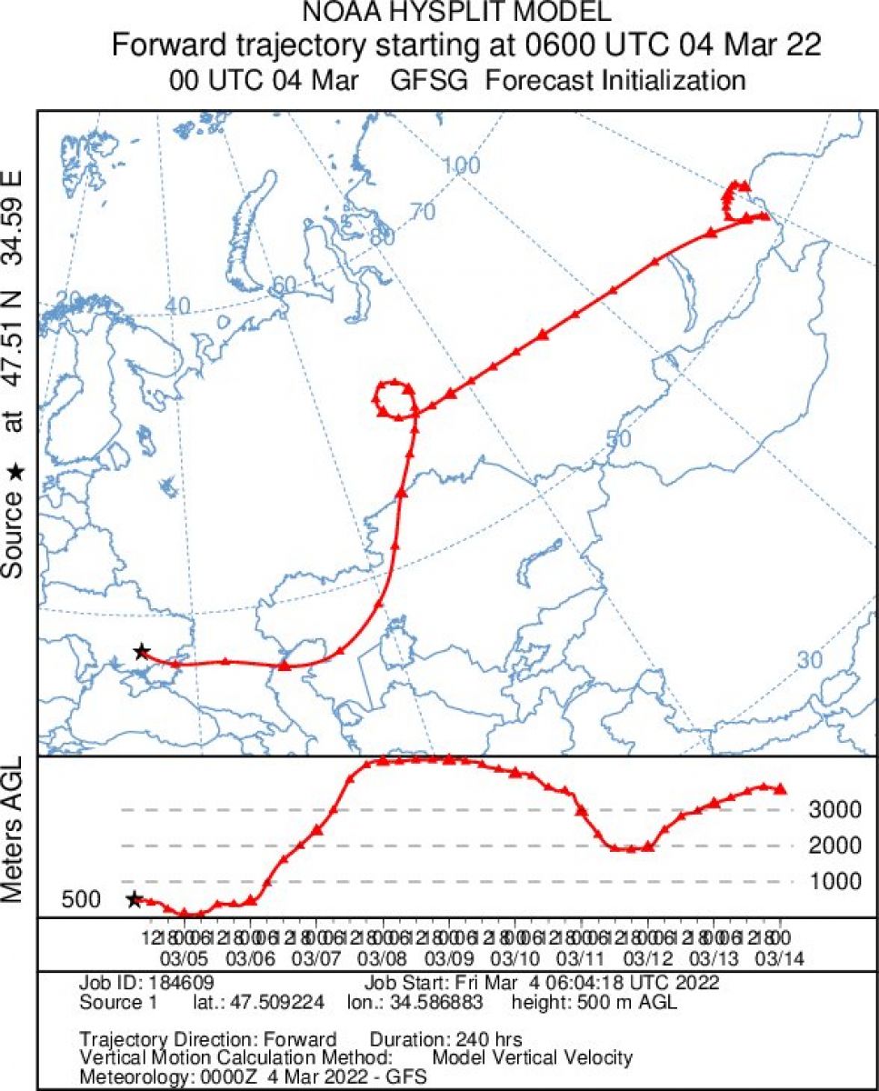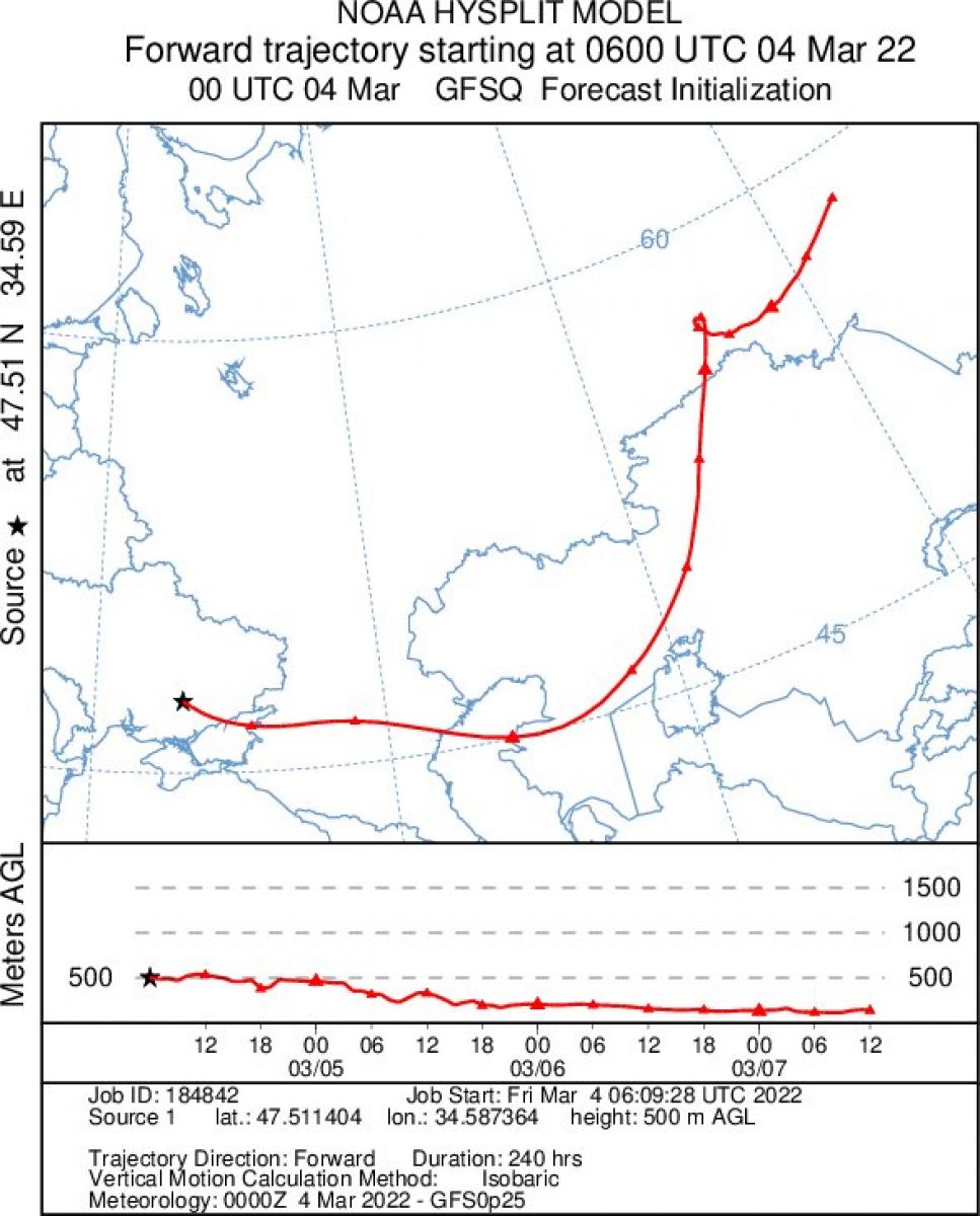 Astfel, potrivit conf. dr. Lucian Sfîcă, ”circulația atmosferică s-a reorientat în regiunea Ucrainei astfel încât un posibil accident nuclear la centrala de la Energodar, pe Nipru, ar transporta norul radiativ spre est-sud-est, tocmai spre teritoriul Rusiei”.