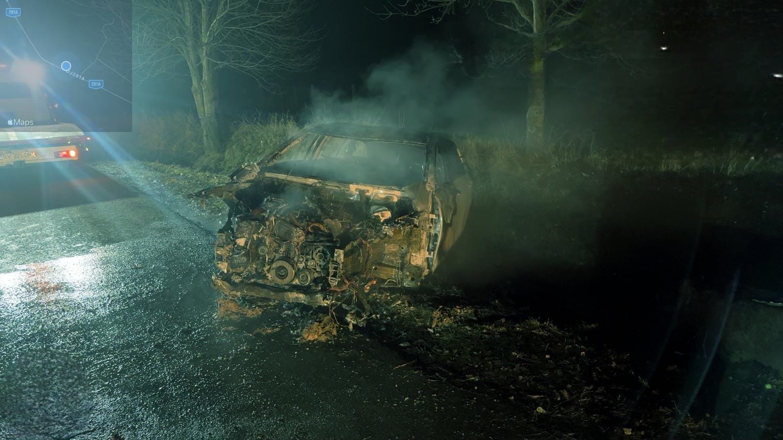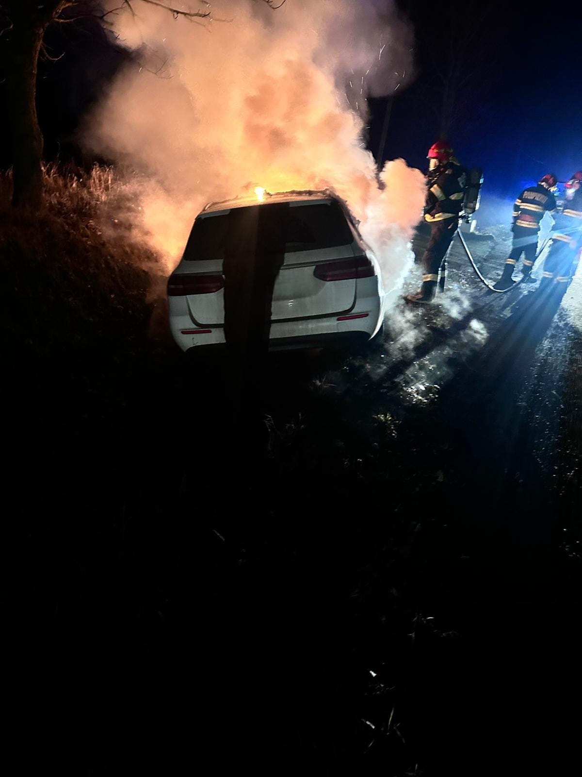 Un autoturism a părăsit partea carosabilă și a lovit un cap de pod. În urma impactului a izbucnit un incendiu la compartimentul motor, care s-a propagat și la habitaclul mașinii.