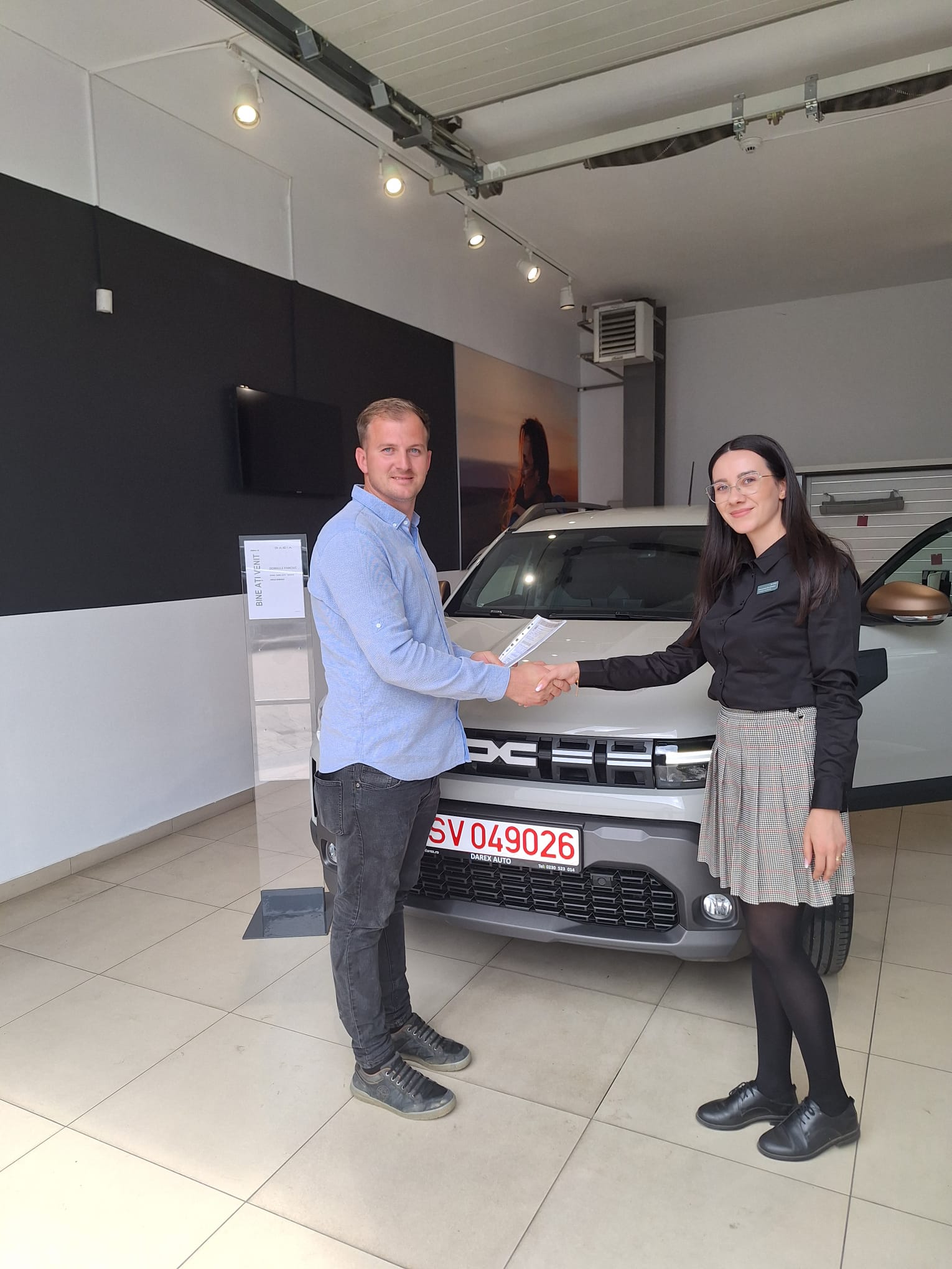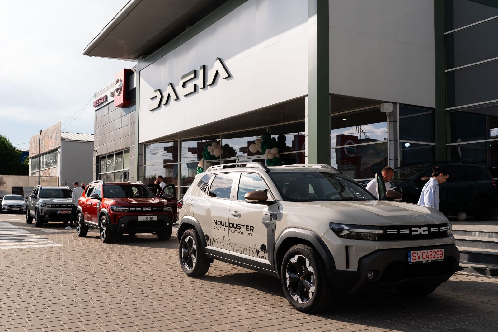 ”Cu emoție și bucurie vă anunțăm că astăzi (pe 31 mai – n.r.) am livrat cel mai nou model Dacia Duster către doi clienți din Suceava și Botoșani. Fiecare detaliu al acestei livrări a fost pus la punct, cu grijă și pasiune, pentru a oferi o experiență memorabilă și plină de bucurie. Noua Dacia Duster este pregătită să facă față oricărei provocări, indiferent de destinație, și este gata să vă conducă spre noi aventuri, oferindu-vă o experiență de conducere de neuitat. Mulțumim pentru încredere și alegerea făcută! Să vă bucurați de fiecare kilometru parcurs cu stil și confort”.