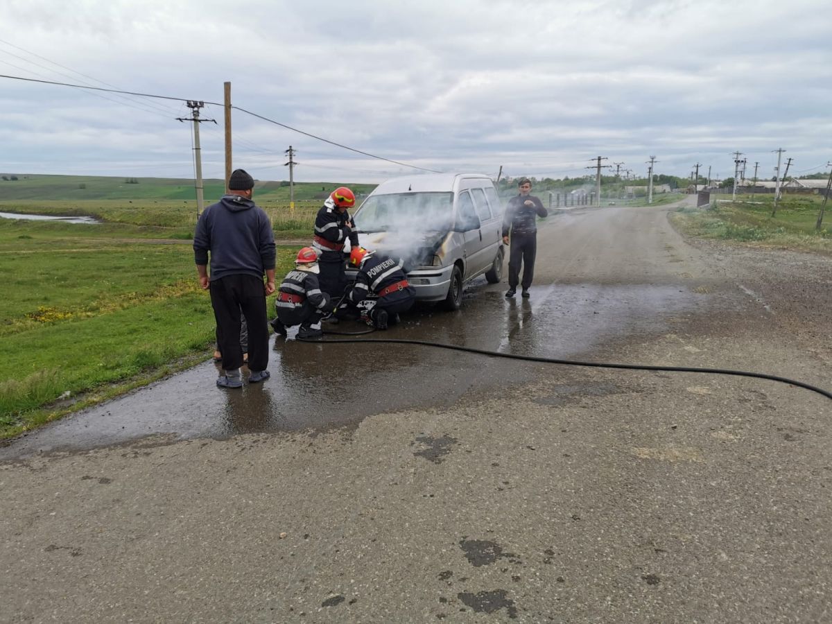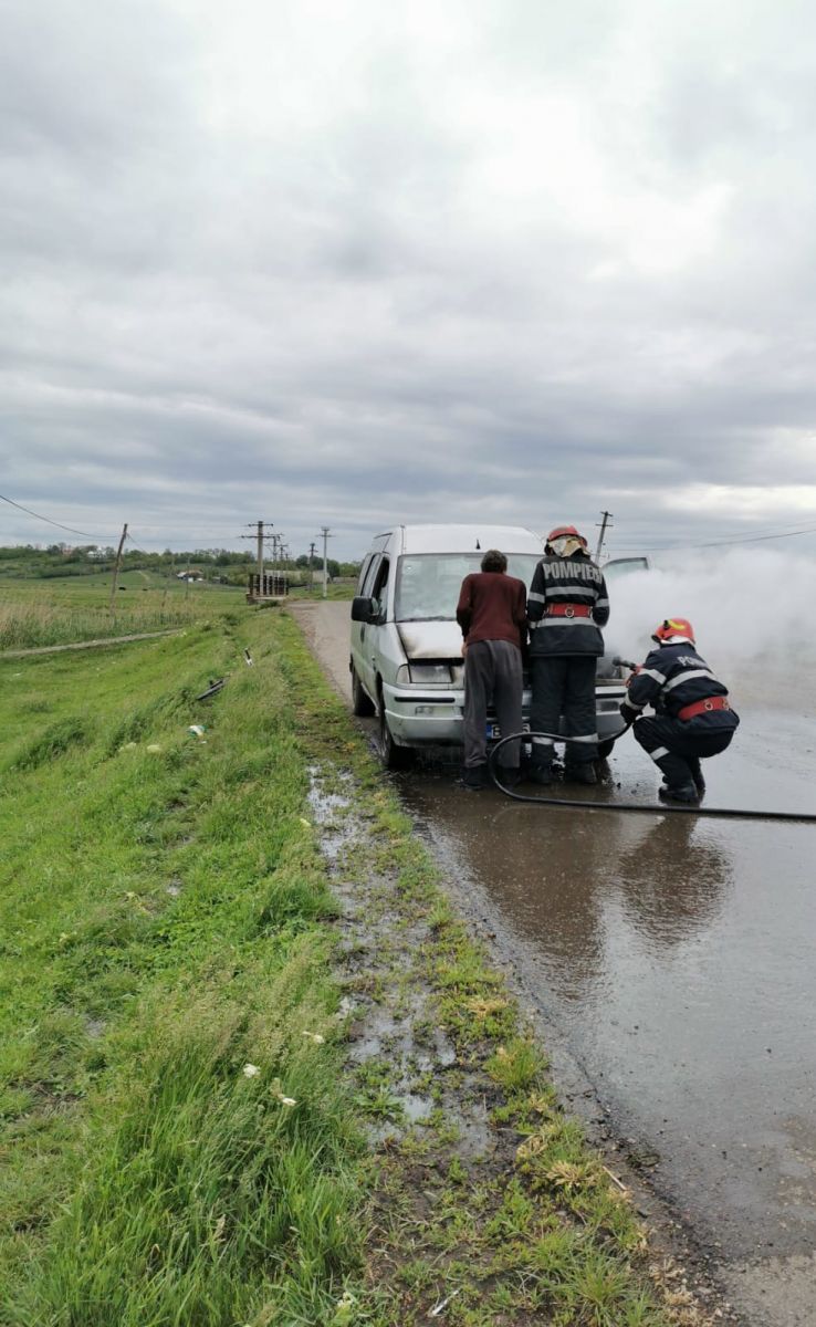 La sosirea forțelor de intervenție ardea partea din față a autoutilitarei. Incendiul a fost stins în limitele găsite de pompieri.