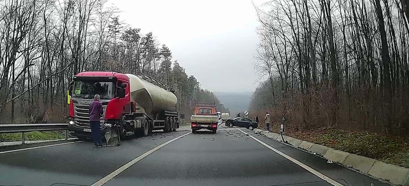 O mașină și un camion s-au ciocnit sectorul de drum DE 58, Flămânzi – Copălău, iar din primele informații se pare că nimeni nu a fost rănit.