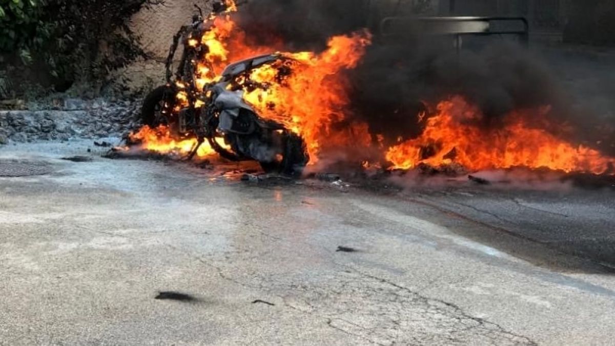 Aceasta staționa pe strada Pacea, iar flăcările și căldura radiată au afectat o altă motocicletă, parcată în apropiere, dar și izolația unei clădiri învecinate.