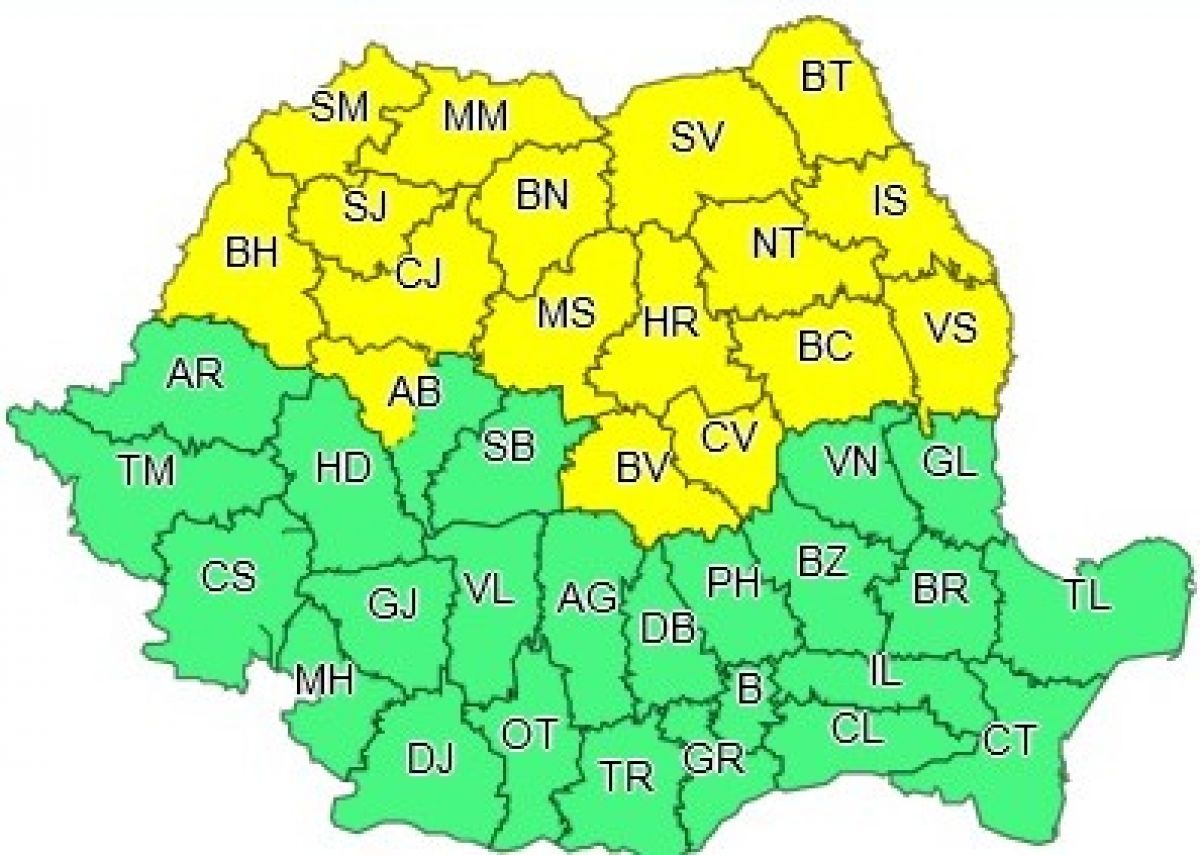 Alerta meteorologilor este valabilă duminică, până la ora 23.00.