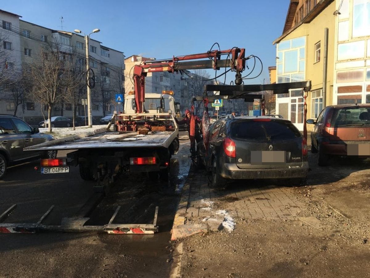 Cum respectivul conducător auto ar fi refuzat în mod ostentativ să-și mute autoturismul de pe trotuar, s-a luat decizia ridicării lui.