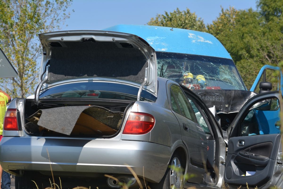 Impact violent Nissan – Mercedes la Zosin, patru oameni în stare gravă – GALERIE FOTO