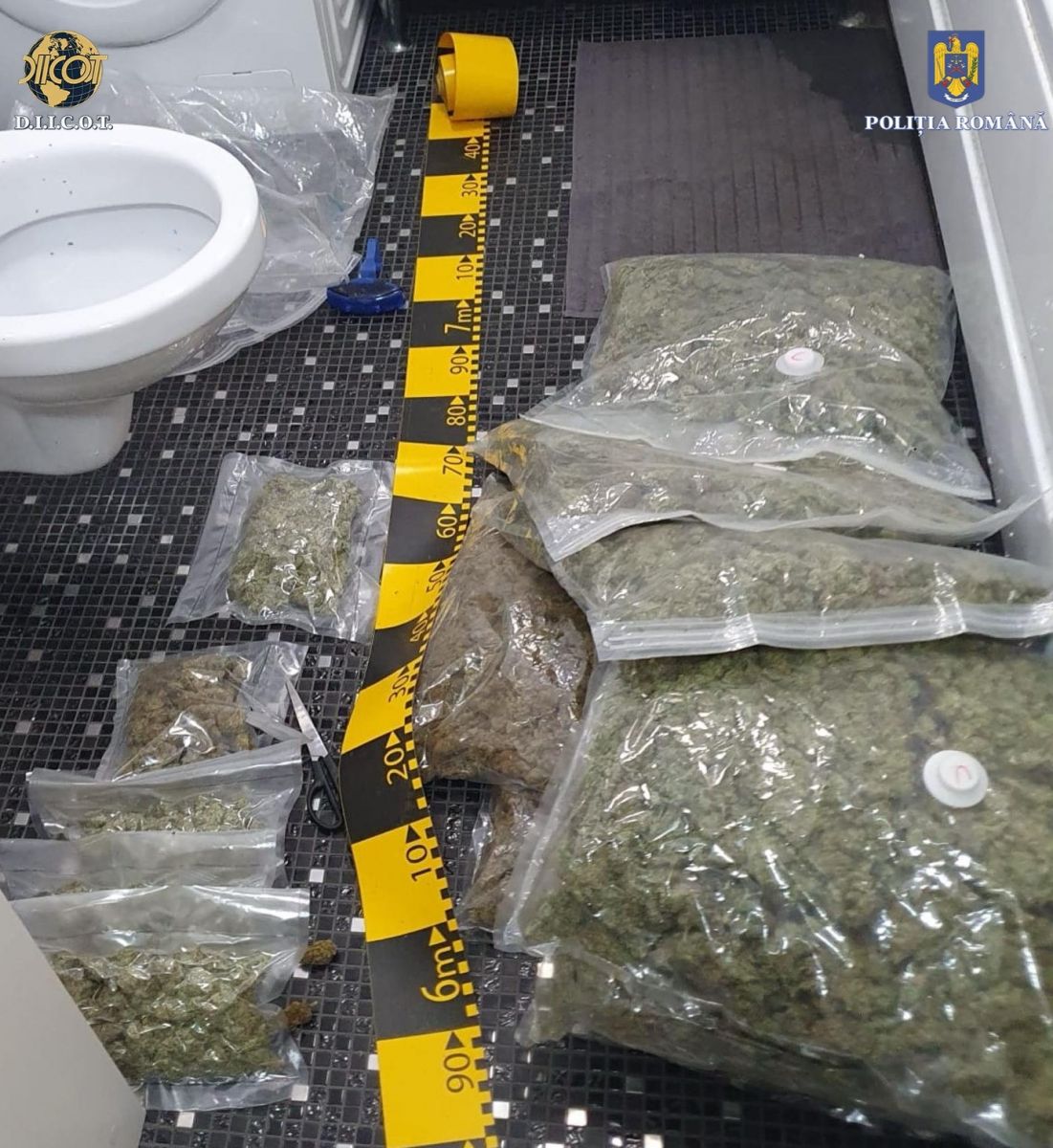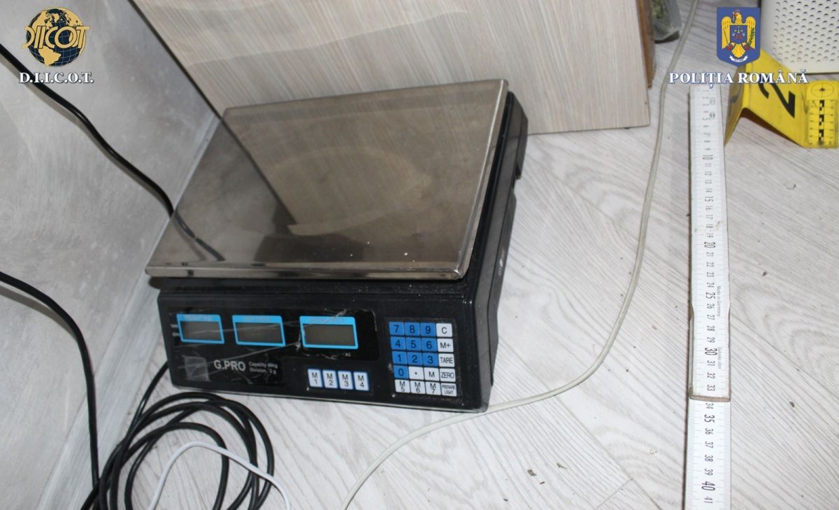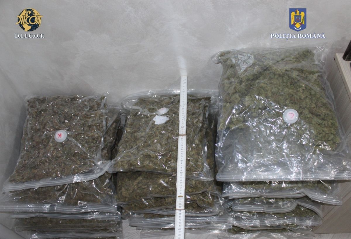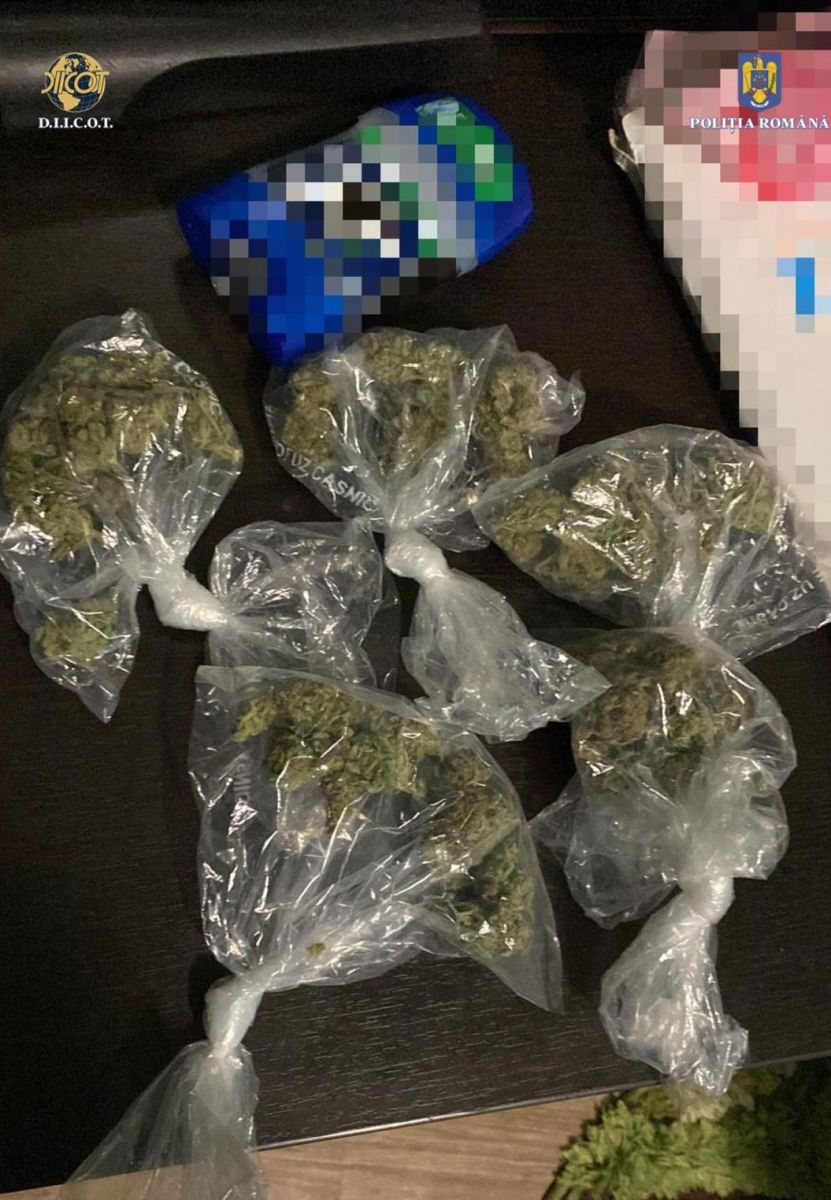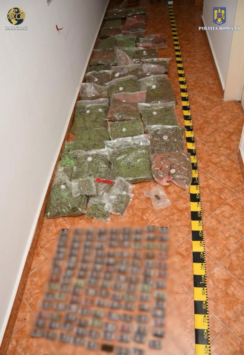 Au fost identificate și ridicate cantitățile de 40 kilograme muguri de canabis (ambalate în 48 pungi vidate), 12 kilograme hașis, porționat și ambalat (125 pachete), aproximativ 120 grame cristal precum și o mașină de numărat bani.