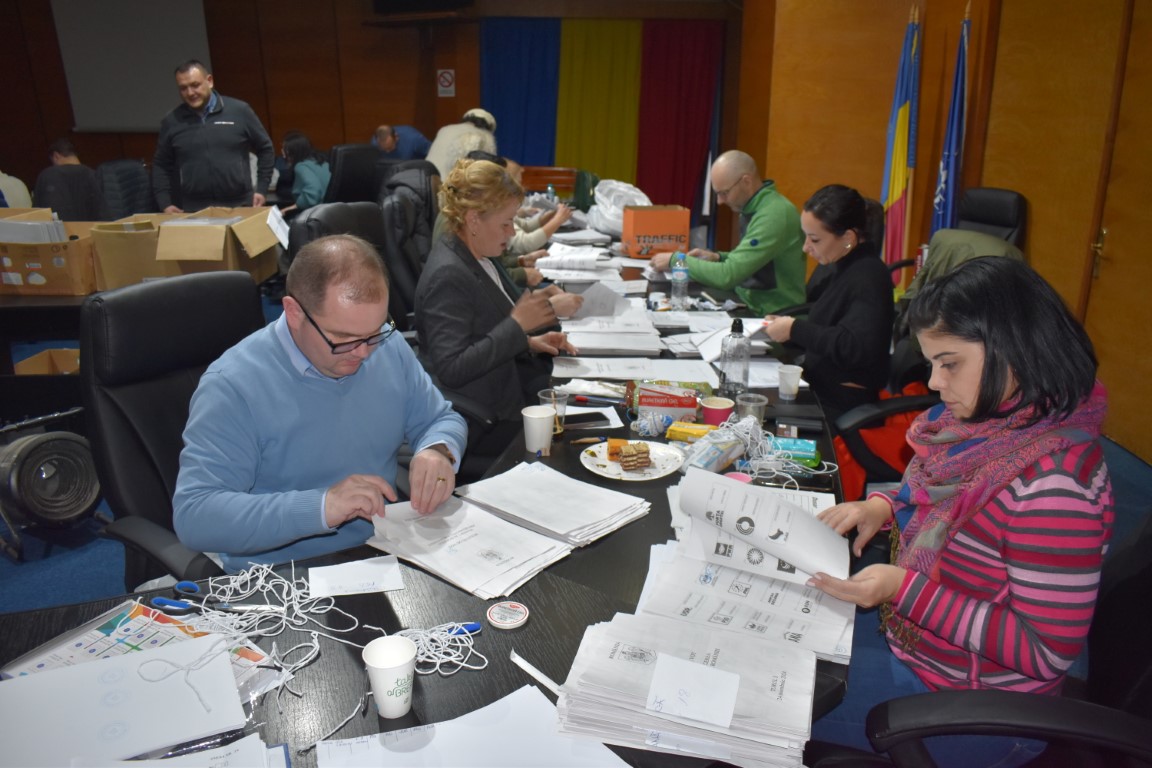 Aproximativ 30 de persoane, membri ai Biroului Electoral Județean, ai Autorității Electorale Permanente, Direcției Județene de Statistică precum și funcționari ai Prefecturii renumără voturile valabil exprimate pe data de 24 noiembrie la alegerile prezidențiale, primul tur.