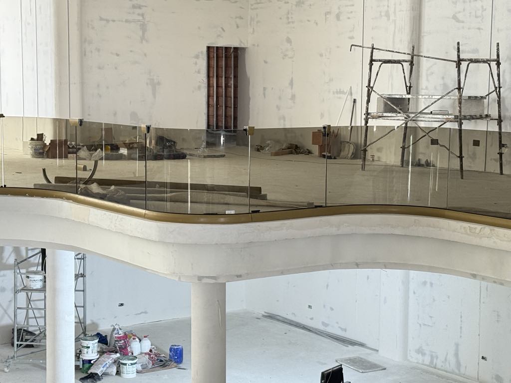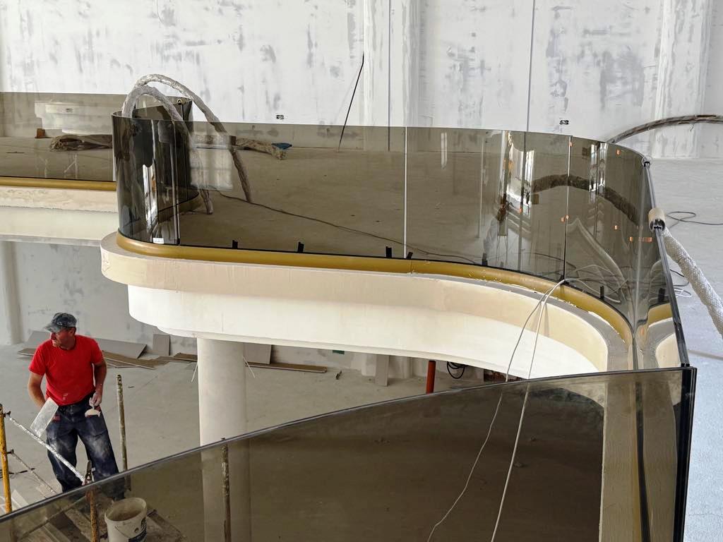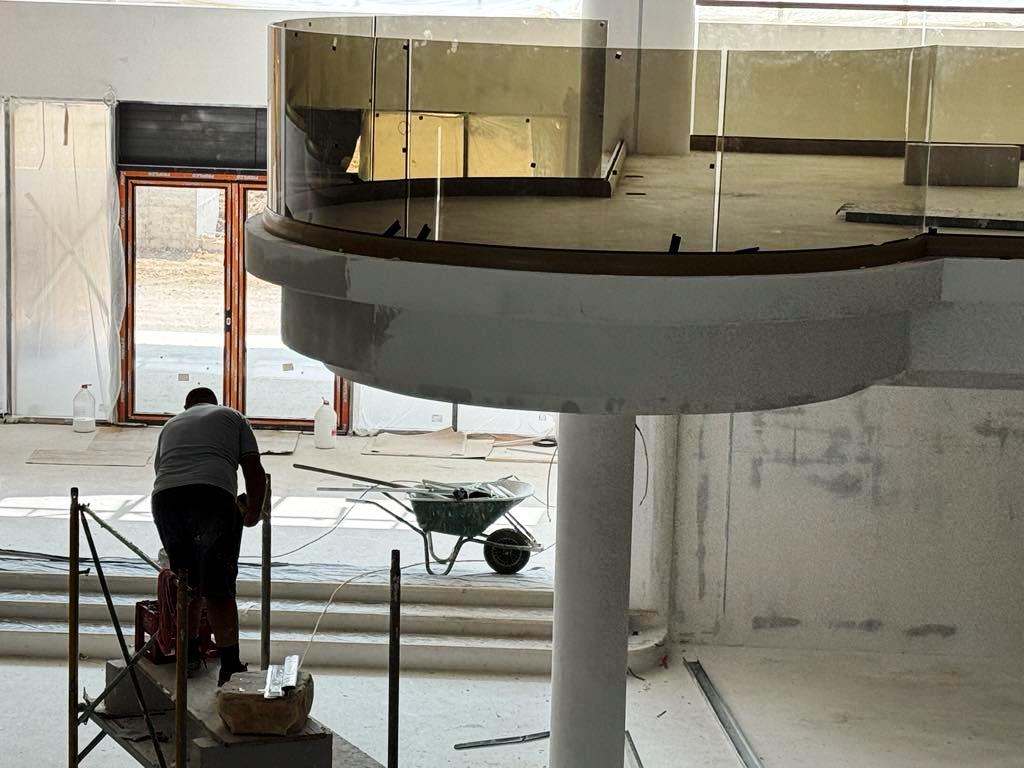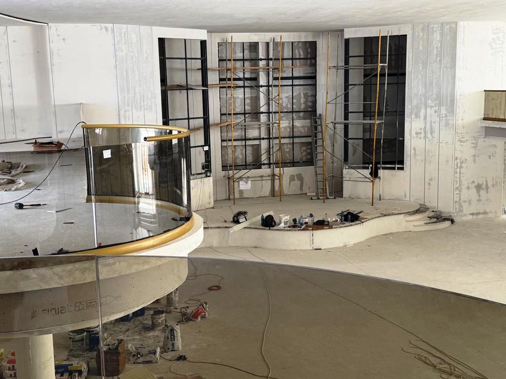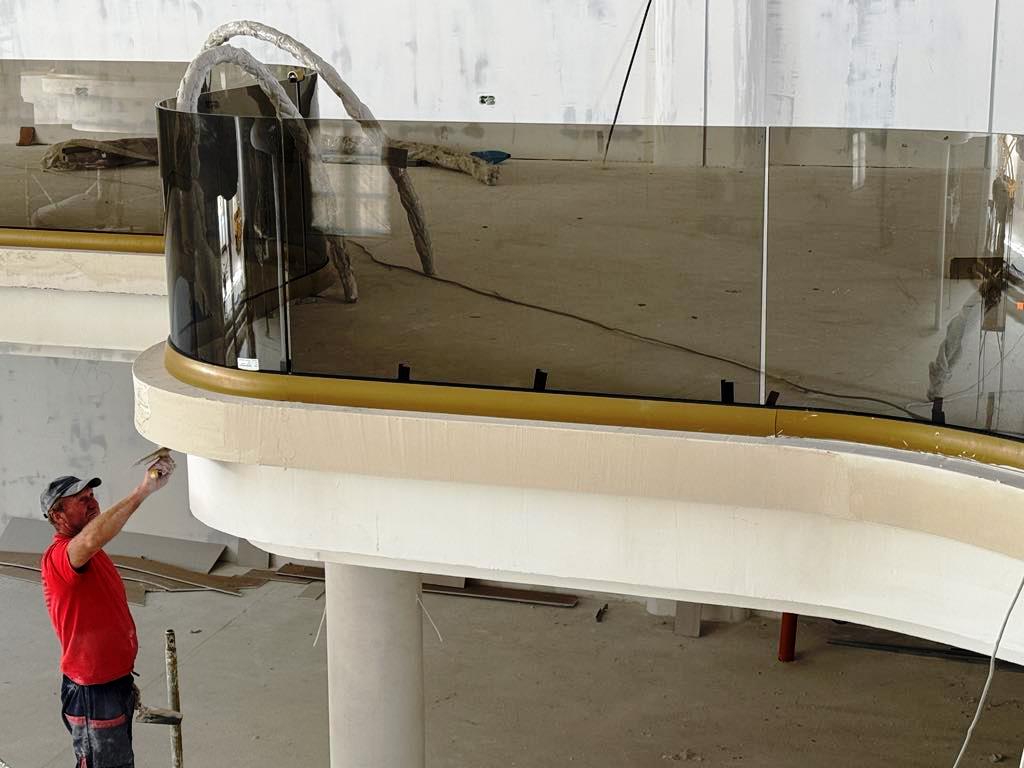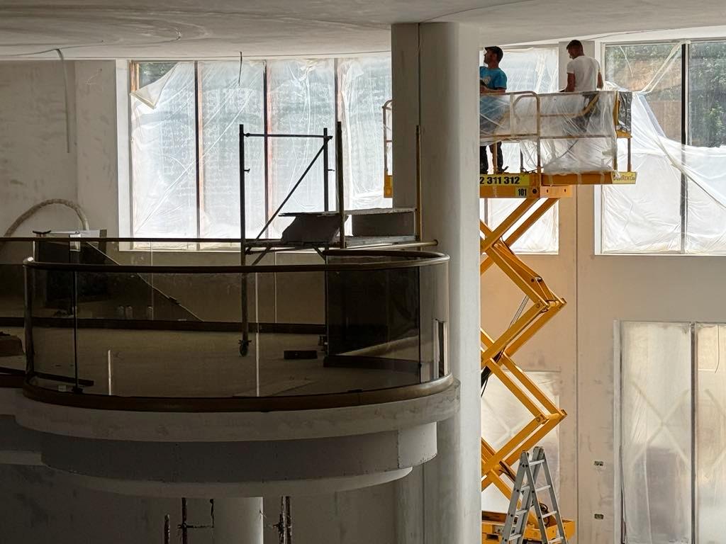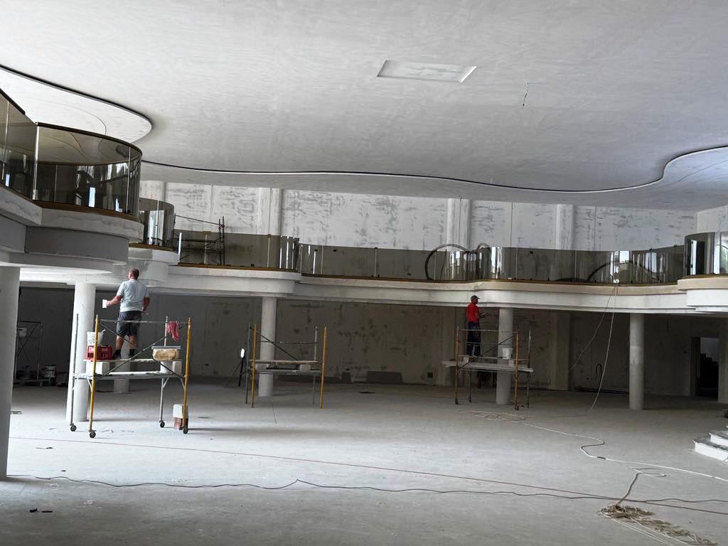 De altfel, pe exteriorul impozantului imobil a fost deja montat un ecran uriaș pe care sunt prezentate imagini cu proiectul, în timp ce în fața complexului se lucrează la amenajarea piscinei.