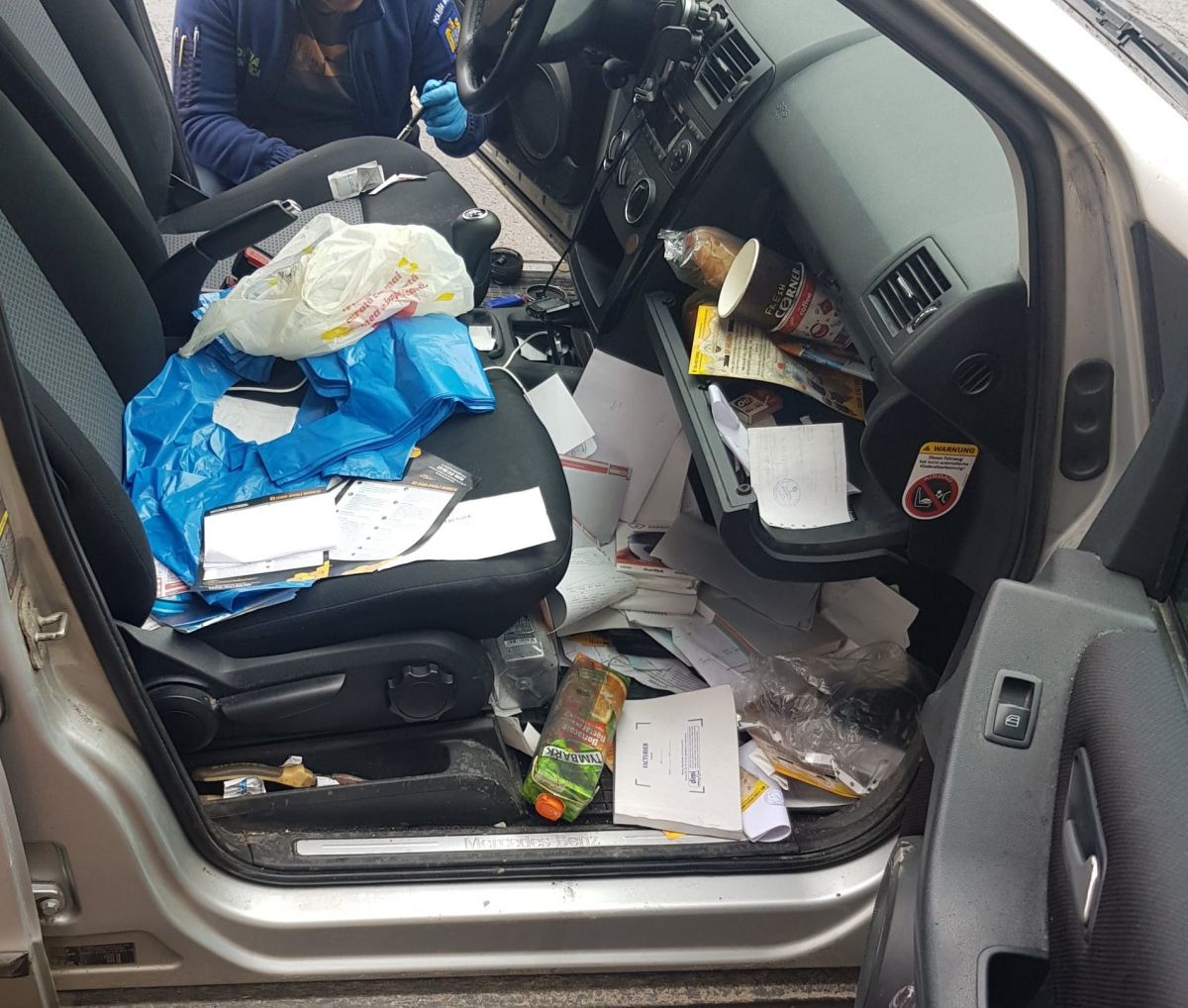 Hoții i-au răscolit interiorul mașinii, plecând nu doar cu produsele din miere, ci și cu... pliantele.